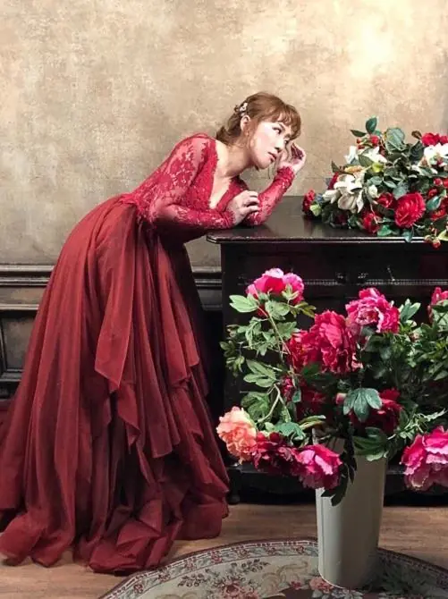 一早淑惠老師就開始準備了,第一套禮服是紅色"有氣勢"的禮服