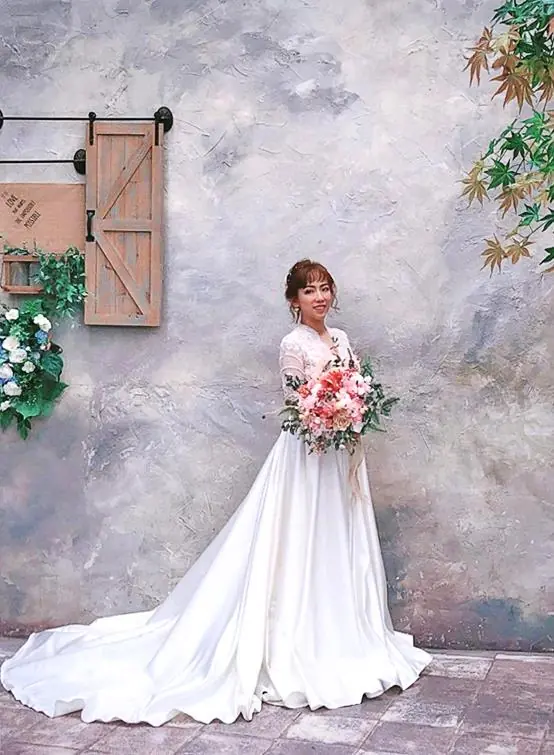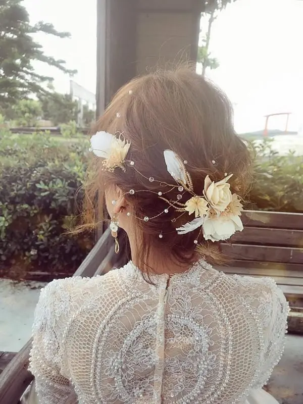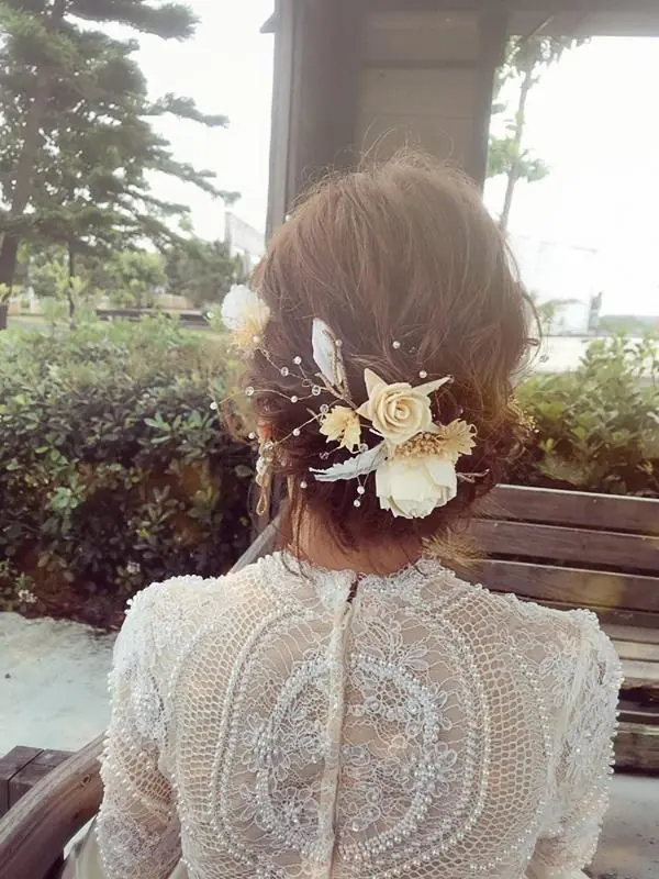 (BTW 新娘本人的頭髮是耳下3公分長度的)