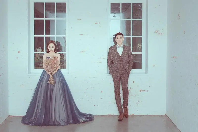 第三套禮服來到了深藍色系,這件拍攝效果意外好看呢