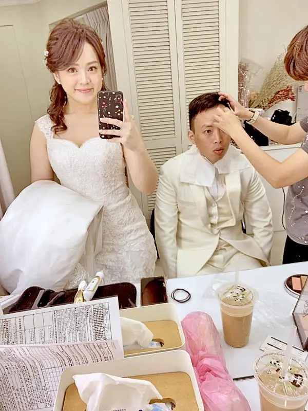 便開始上妝。其實在六點左右,我們的化妝師姿雅有先來電確認是否開拍,