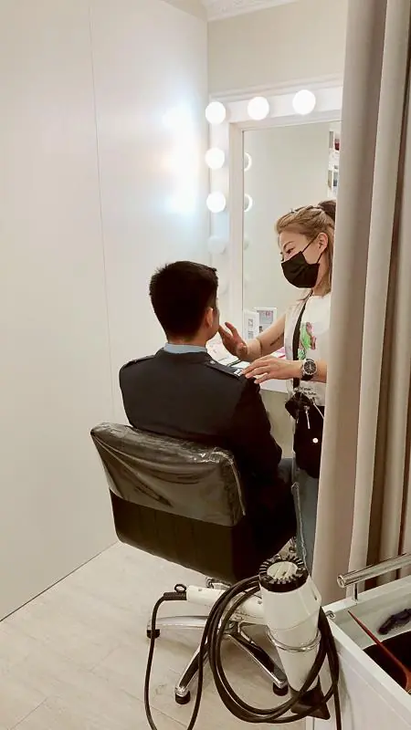 在拍攝前給予我建議 可以染的髮色 和幫我準備許多髮片來填補我的髮量