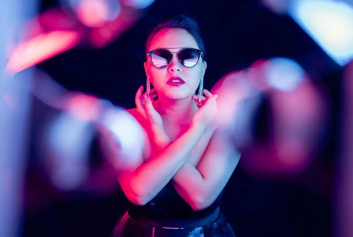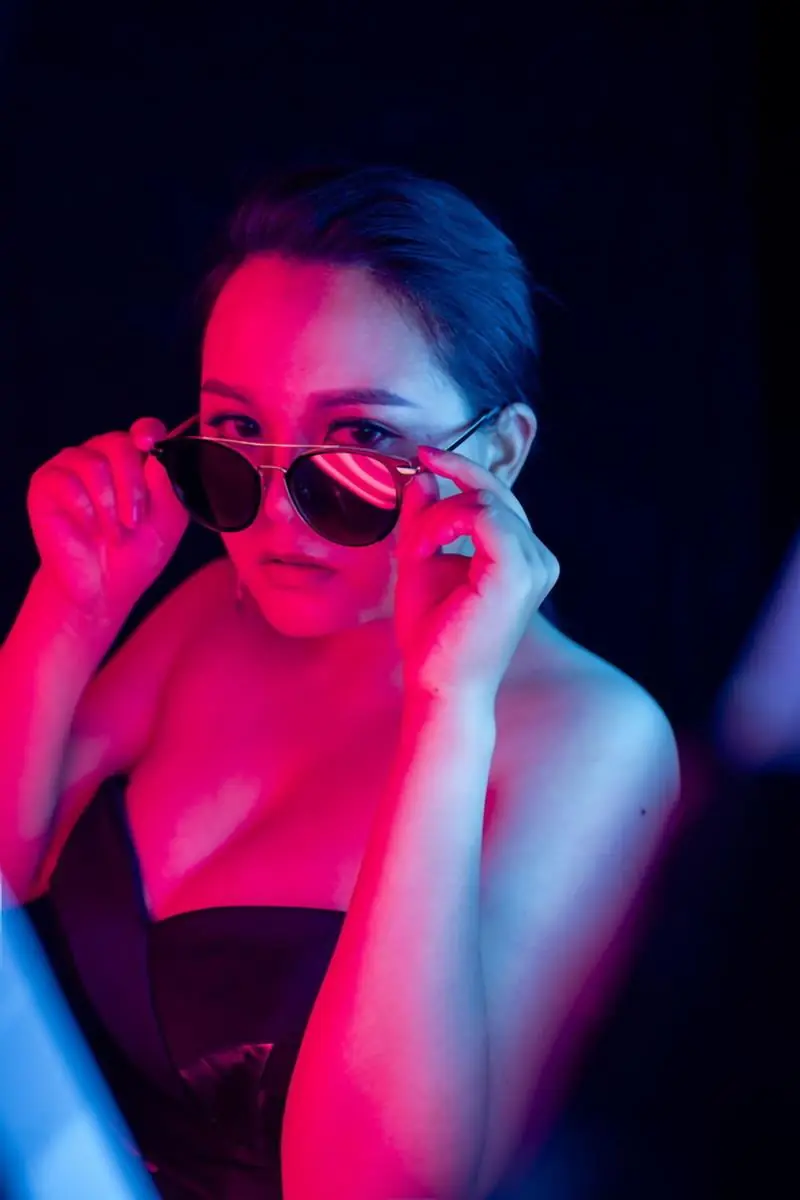 藍紅光系列,為了讓燈光維持穩定,雅玲當下的姿勢是半跪在我們面前,雙手打開扶著燈,我們拍了多久她就撐了多久,我一直很欣賞她除了能在千變萬化的鏡頭下快速掌控燈光,對新人的照顧更是無微不至,如果可以做滿100分,她絕對做到120分,親身體驗才能感受到雅玲的細心,外拍時她優先幫我撐傘、整理裙擺、擦汗、遞水,更讓我深刻感受的是在外拍我有站在高處或是樓梯上時,她每一次都會扶著我的手,確定我站的位置是踩穩的、安全的,她才會鬆手去拿補光板,在棚內就算她在怎麼忙,都會優先安排座位讓我們休息,她總是身兼多職,超乎我們期待的專注在她的崗位上,如此的「專注」才能在攝影師給新人每一秒的指令下,扮演一個傳達訊息和提示的重要角色,謝謝貼心的雅玲,相信她必定也能成為一名優秀的掌鏡者。
