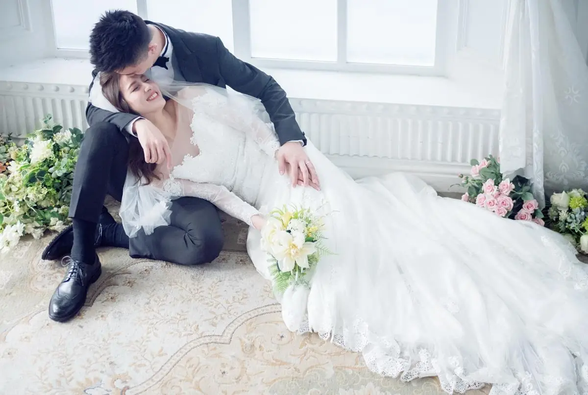 外拍完之後回到棚拍~換第三套妝髮時我和新郎已累到不行@~@