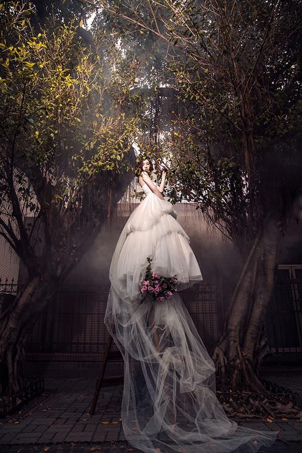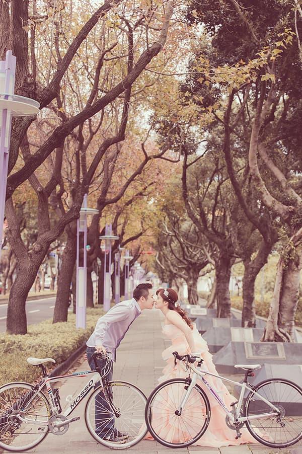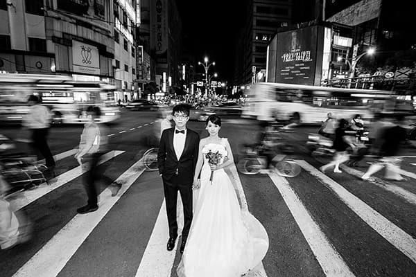 在霓虹閃爍的台北夜色裡,中山北路三段街頭展現出專屬於城市的浪漫節奏。車流、人影與燈光交錯,新人並肩站在斑馬線上,在熙來攘往的世界裡,唯有彼此的存在顯得格外清晰。那份安靜與從容,讓愛情在喧囂中更顯真實。夜裡的車燈如流星般劃過,街角的光影灑落在白紗上,彷彿時間也為這一刻按下了暫停鍵。白天時的林蔭大道溫柔寧靜,夜幕降臨後又化身為都市舞台,中山北路三段是屬於都會戀人的場景,將愛的故事寫進車水馬龍的節奏裡,成為台北最具韻味的一幕。