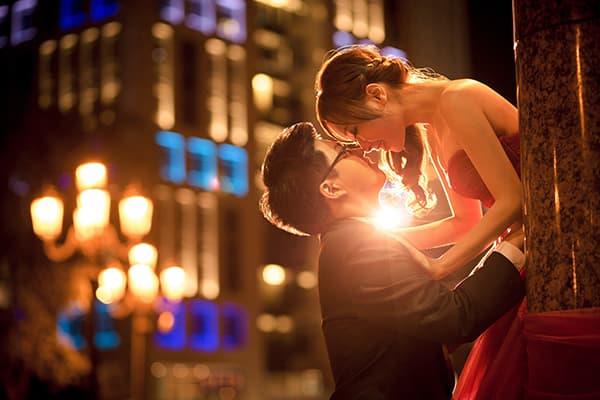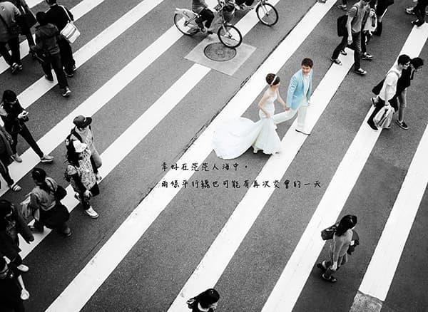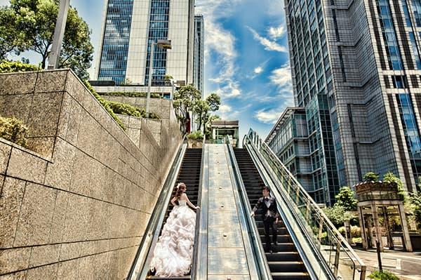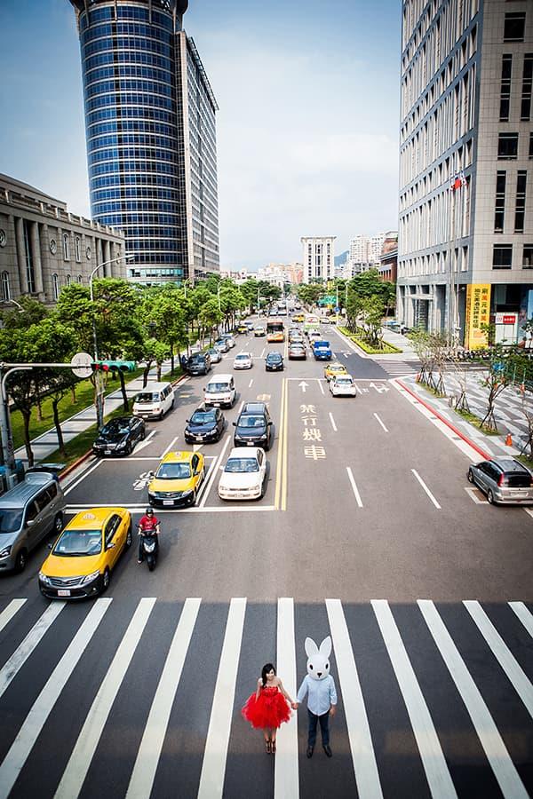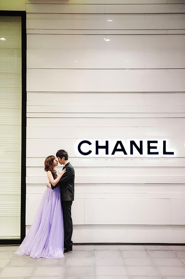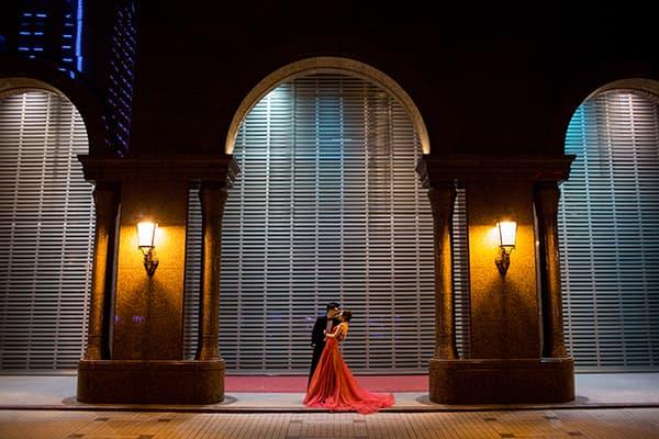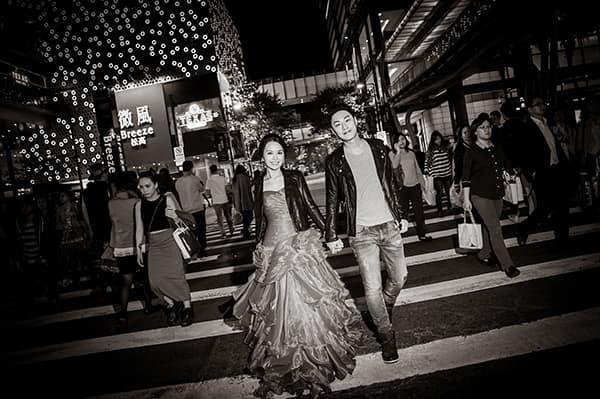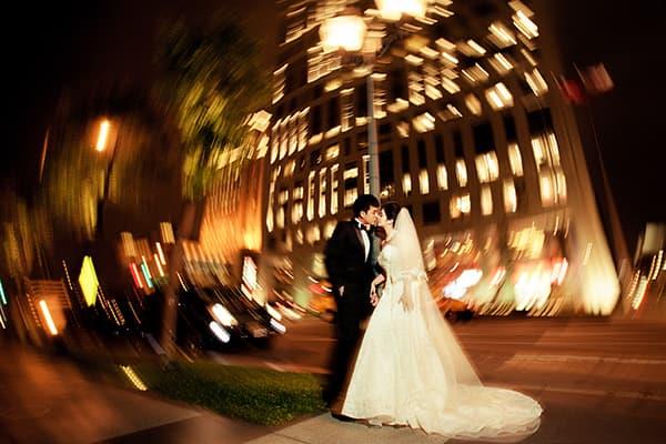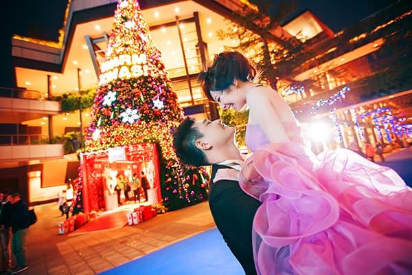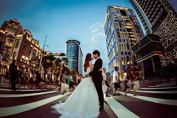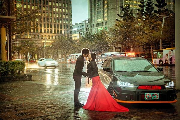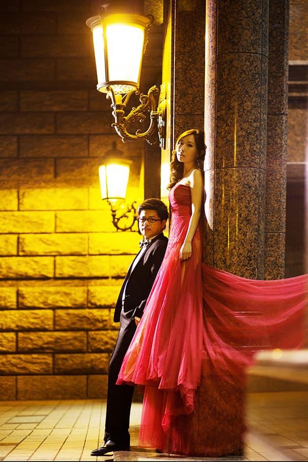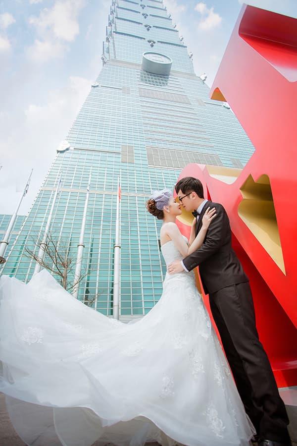 在城市的璀璨夜色裡,信義區以它的摩天輪廓與光影節奏,成為台北最具都會感的浪漫舞台。高樓林立間閃爍的燈光,倒映在新人純白的禮服上,彷彿將愛情包裹進整座城市的心跳。穿越人潮與車流,他們在斑馬線中央相擁,背後是信義大道的華麗與節奏;在台北101的光影下,每一次擁抱都顯得格外深刻。這裡的夜不只是燈火通明,更是一種屬於現代戀人的詩意——時尚、真實、閃耀。信義區的夜景,讓愛在城市的脈動裡閃爍成永恆。