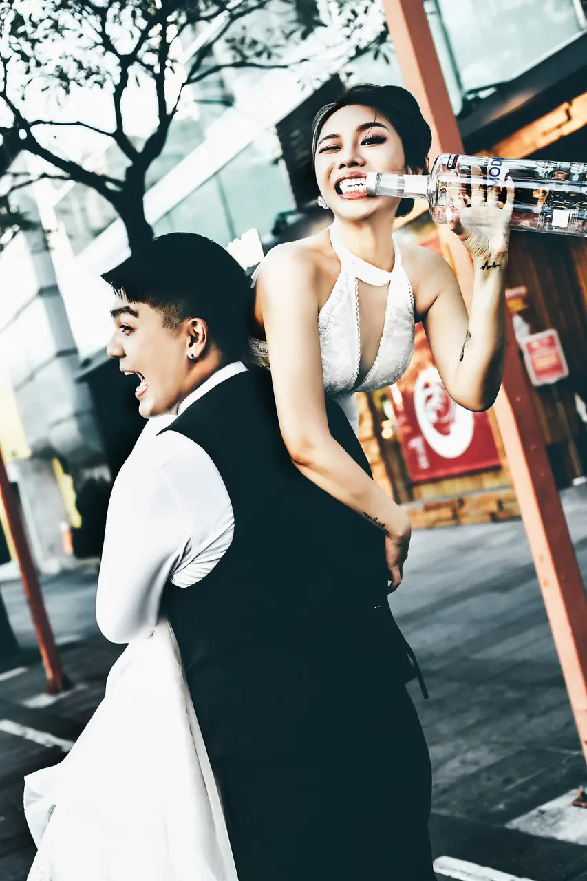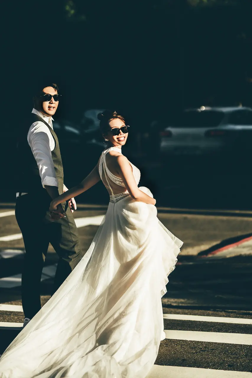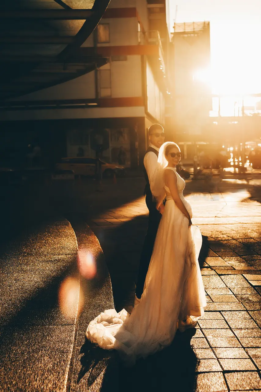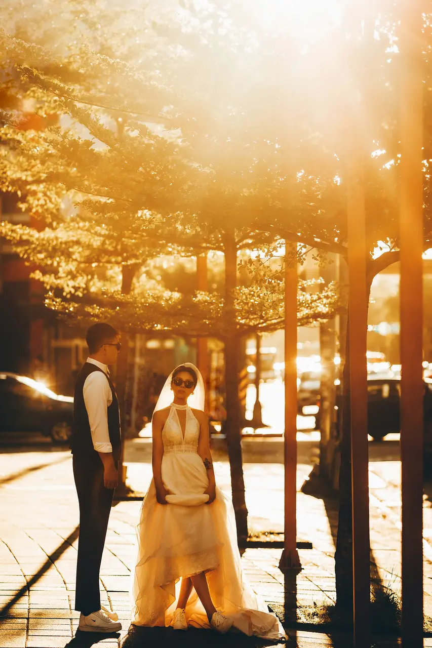 在台北市的東區商圈,這片繁華的城市畫布以其獨特的魅力與活力,成為婚紗拍攝的不二之選。仁愛路四段的十字路口,日光灑落,街道兩側的時尚品牌櫥窗閃爍著迷人的光影。這裡的每一個轉角都充滿故事:街邊的咖啡館氤氳著咖啡香氣,與愛人漫步其間,彷彿置身於巴黎的浪漫街頭。退一步,是復興南路的熱鬧,市集的喧囂與街頭藝人的表演交織出一曲生活的交響,為婚紗鏡頭增添無限靈感。特別是在黃昏時分,當夕陽的餘暉染紅整片天空,光影交錯,這裡成為攝影師心中最詩意的拍攝場景,為愛情故事增添一抹溫柔的色彩。