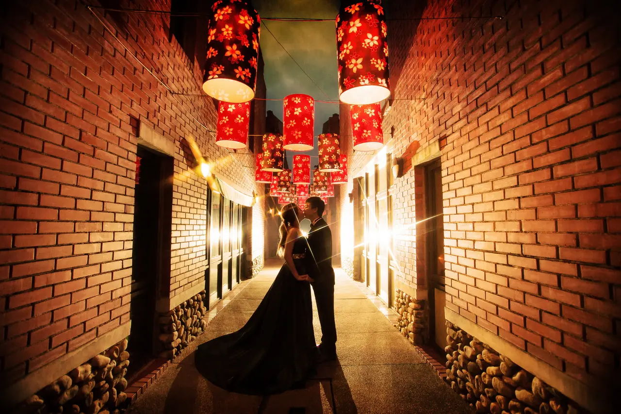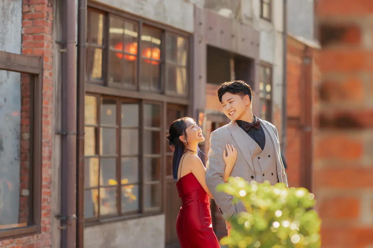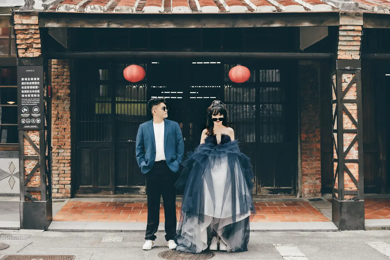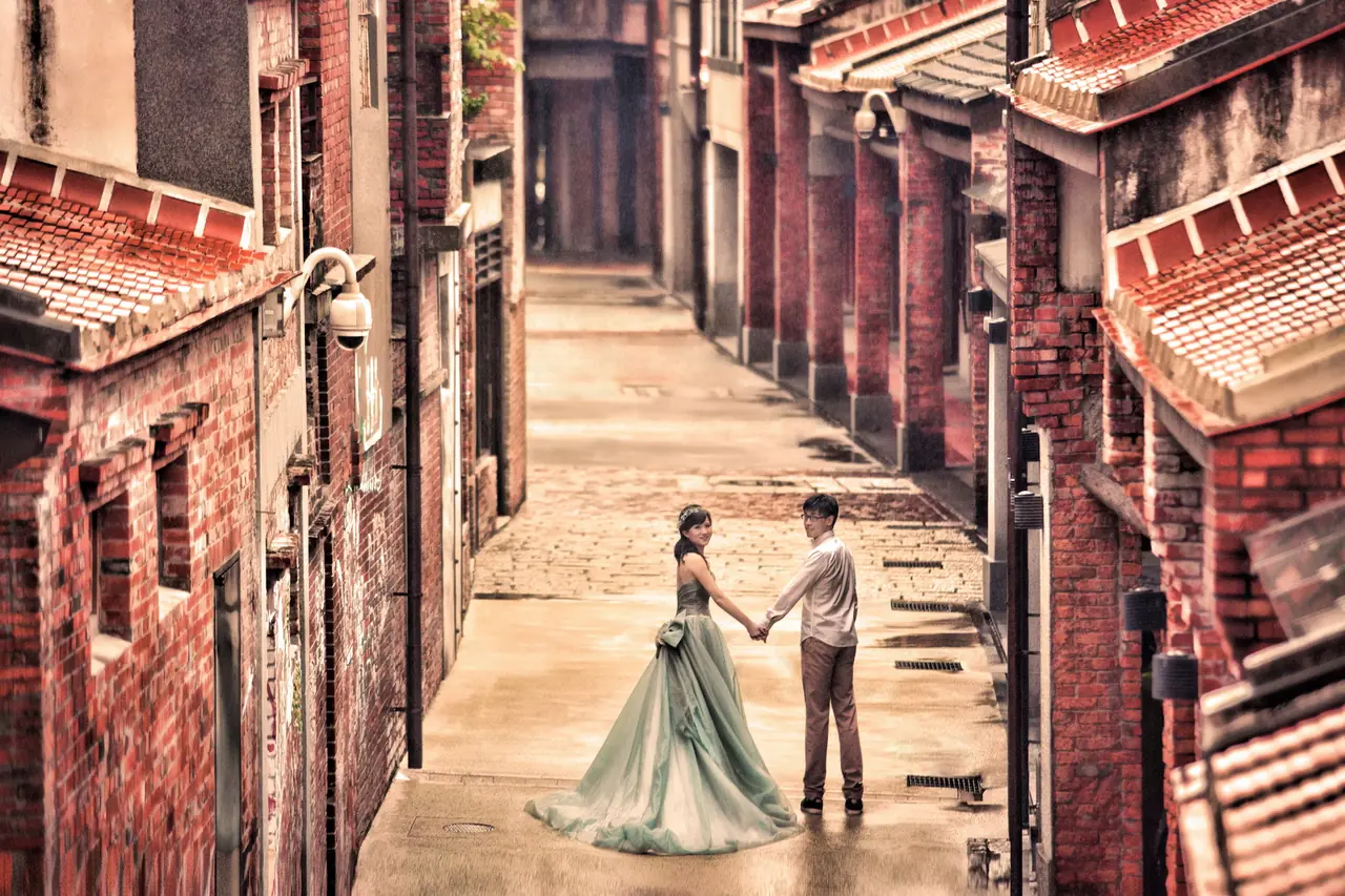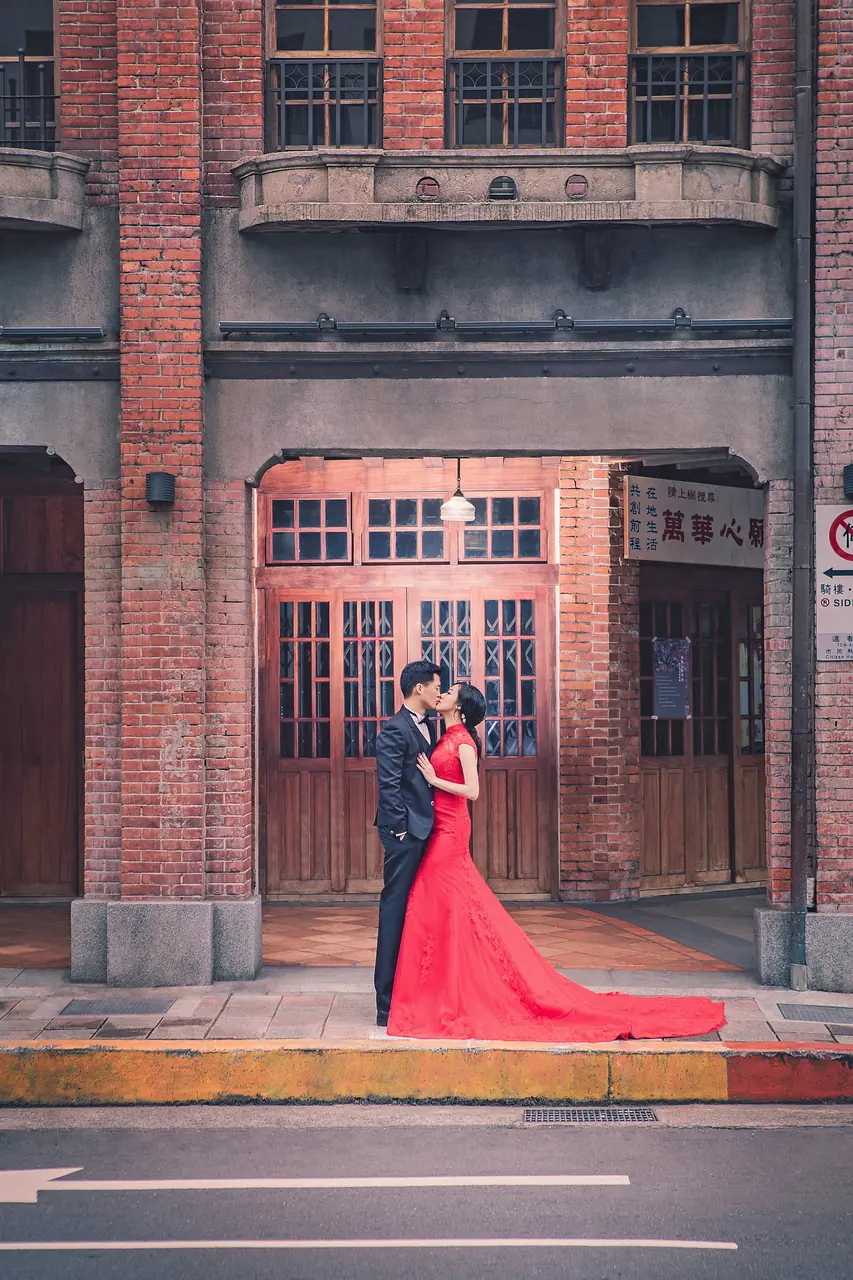 剝皮寮歷史街區如同一幅古老的畫卷,靜謐地展現著臺北的歷史與文化芳華。這裡的紅磚牆與木窗框,猶如時光的見證者,讓人彷彿步入百年前的老街,感受那份古老而溫柔的魅力。對於婚紗攝影來說,剝皮寮提供了無數絕佳的取景點,無論是斑駁的石板路上相依漫步,還是陽光透過窗戶灑下的光影,皆能為新人的浪漫時刻增添無限詩意。歷史建築的古樸與現代文化的交融,使這裡成為攝影者心中一片靜謐卻充滿生機的天地。在這片充滿故事的街區裡,每一個轉角都可能拍下永恆的美好,一如愛情的永恆。