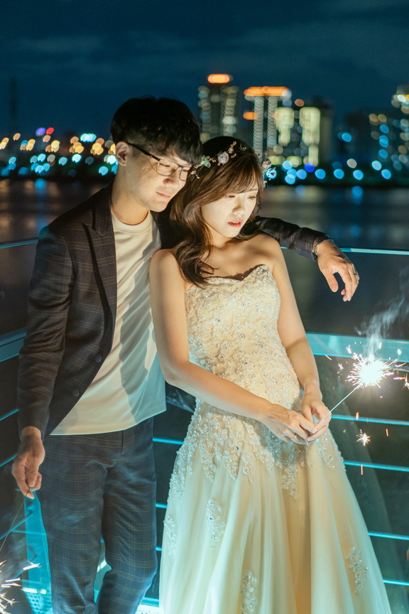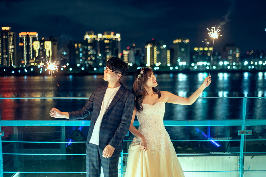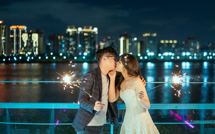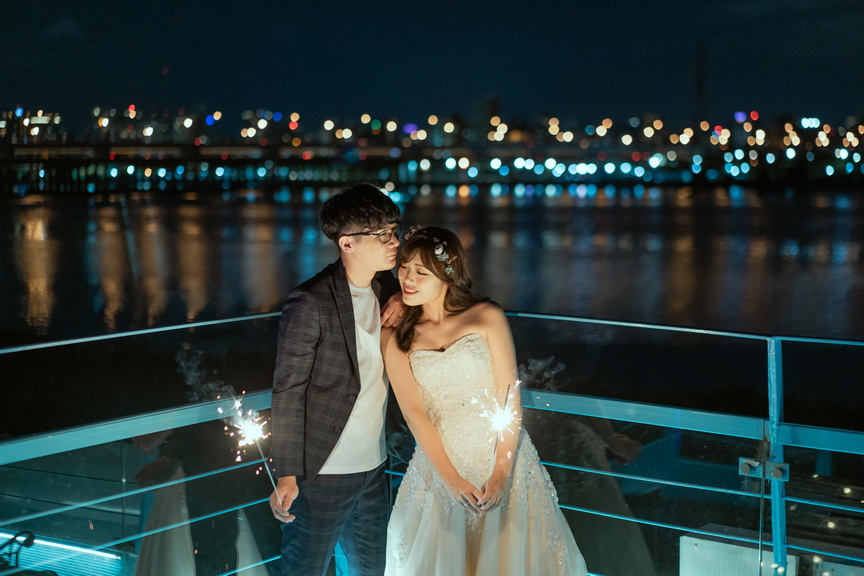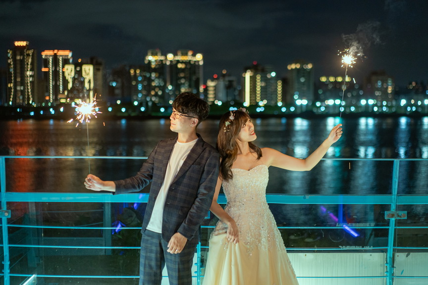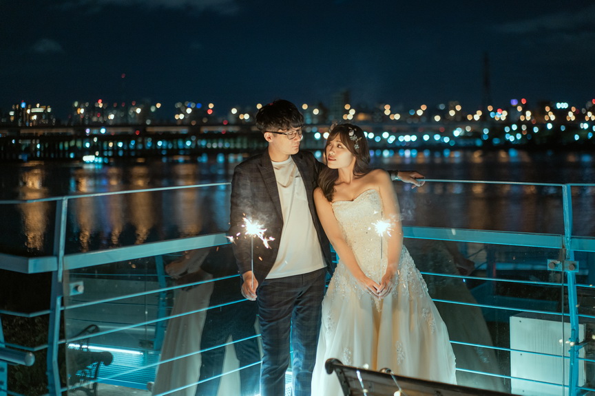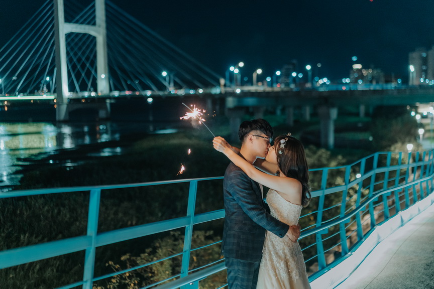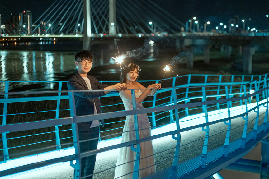 葫蘆國小跨堤人行陸橋是一道靜謐而優雅的橋樑,蜿蜒於士林區的環河北路三段。在這裡,微風輕拂,光影交錯,橋身如波浪般的弧度設計,為婚紗拍攝增添了不凡的層次美。當日落的餘暉染紅天際,重陽大橋與環河快速道路的車流如星光閃爍,令人陶醉於這片城市的溫柔。新婚夫妻可在這裡漫步於橋上,捕捉絢爛的夕陽,或待夜幕降臨,遠眺大稻程的煙火璀璨。攝影師可利用橋上獨特的角度,拍出如畫般的浪漫照片。這座橋不僅是交通的連結,更是情感的交織地,無論是騎行者或徒步者經過此地,都能感受到那份愜意與美好。