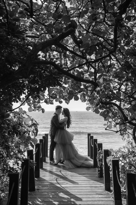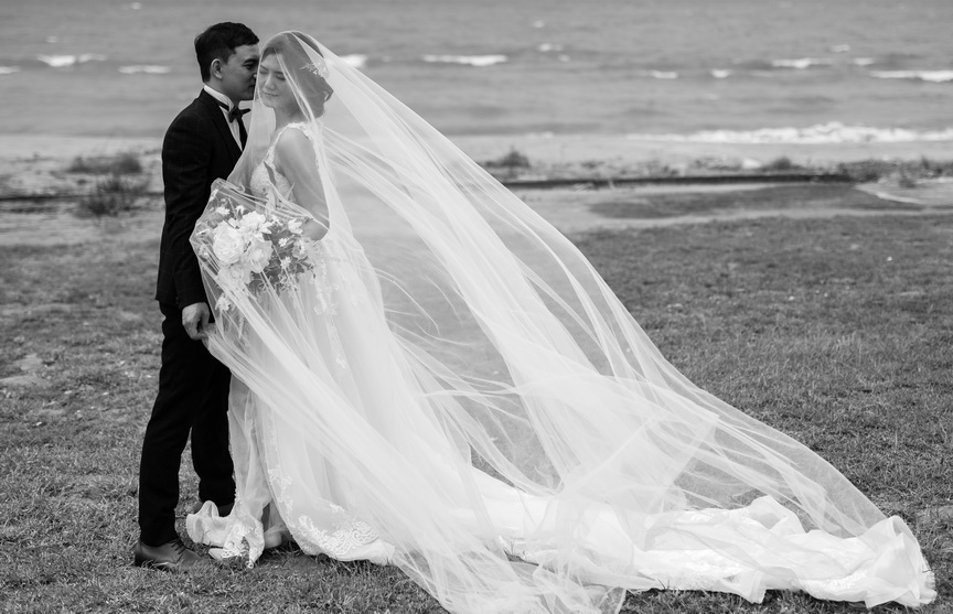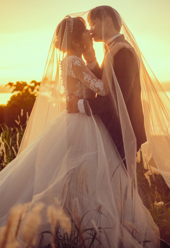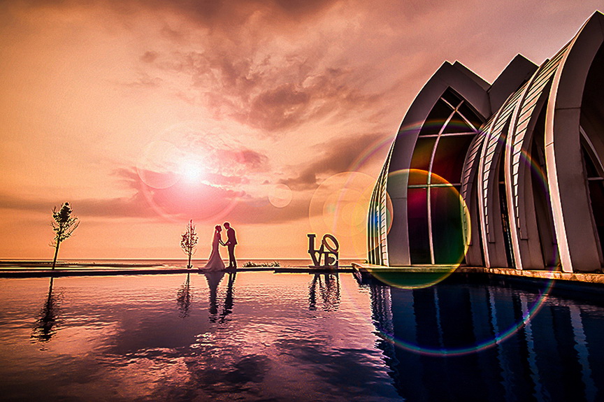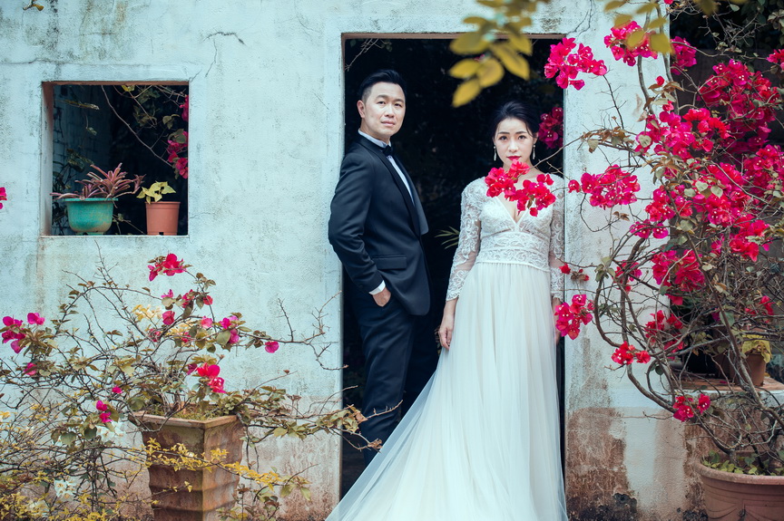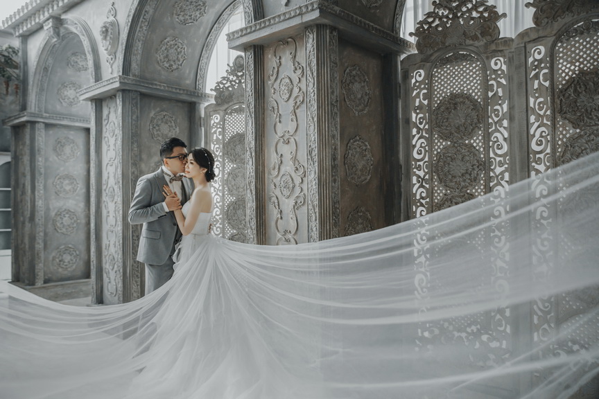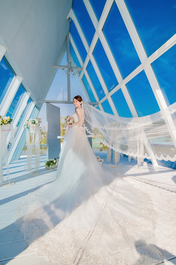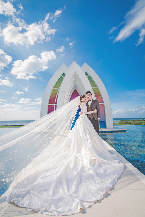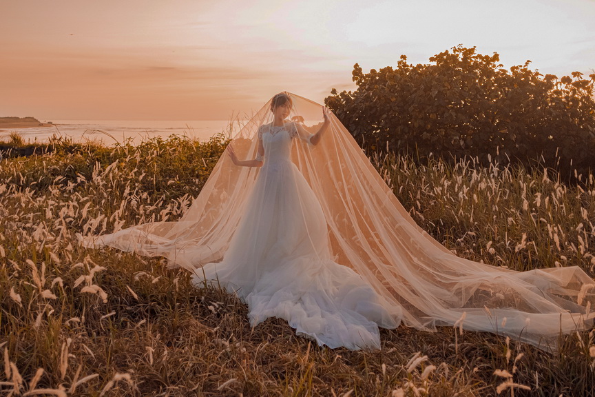 在淡水的海風吹拂下,莊園的白色禮堂宛如夢境般靜立於湛藍天際之下。陽光穿過彩色玻璃灑落在潔白的禮服上,微風掀起薄紗的瞬間,彷彿整個世界都為愛停留。這裡,是浪漫開始的地方—淡水莊園婚紗基地。純白的弧形建築映照著天空與海洋的色彩,象徵愛情最純粹的誓言;教堂內每一道光線、每一次凝視,都是永恆的見證。傍晚時分,夕陽映照水面,金紅色的天空與倒影交織成一幅無可取代的畫。從晨光到日暮,每個角落都散發著詩意與溫柔,讓愛情的故事在這片浪漫天地裡被完美寫下。