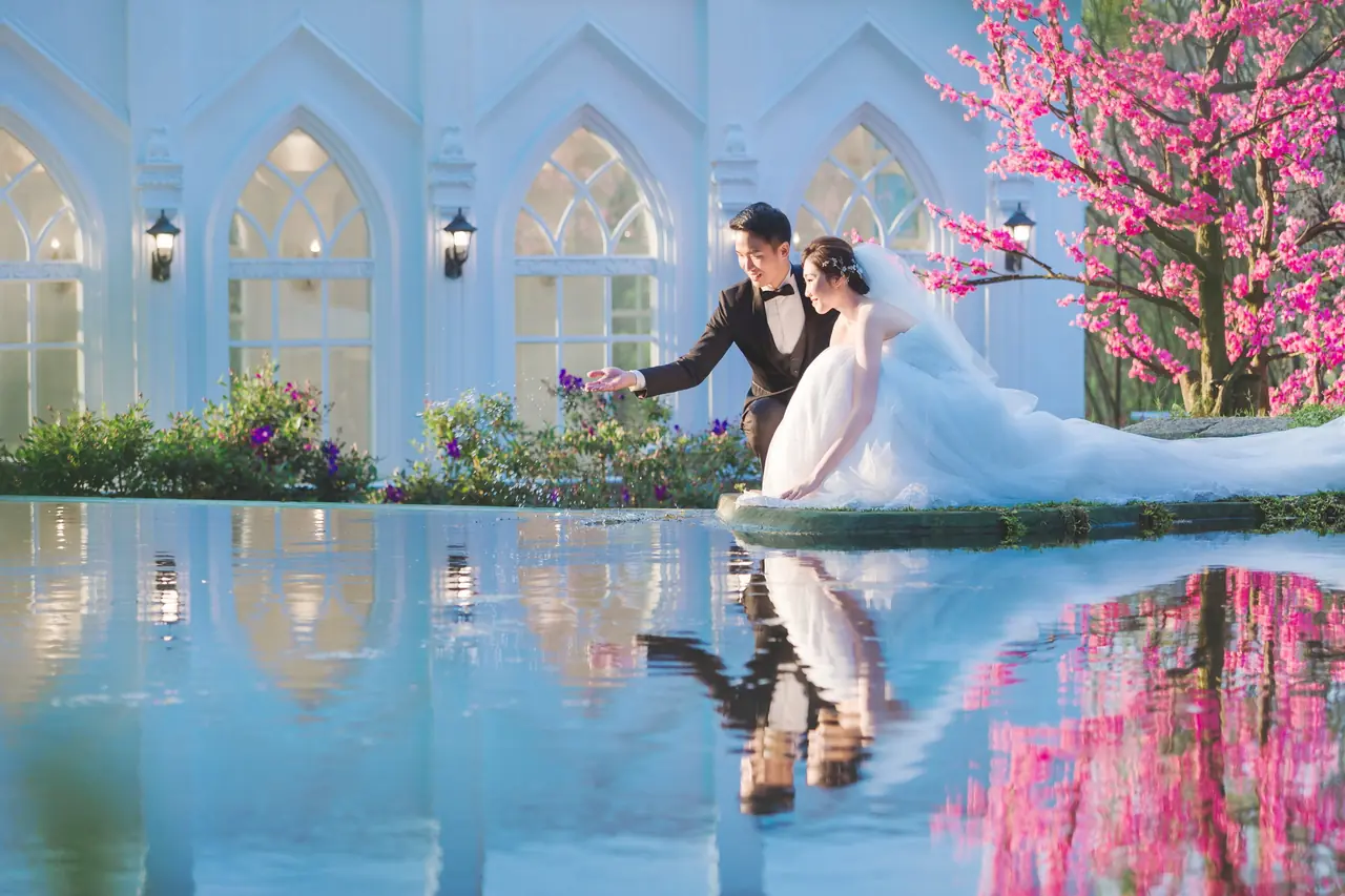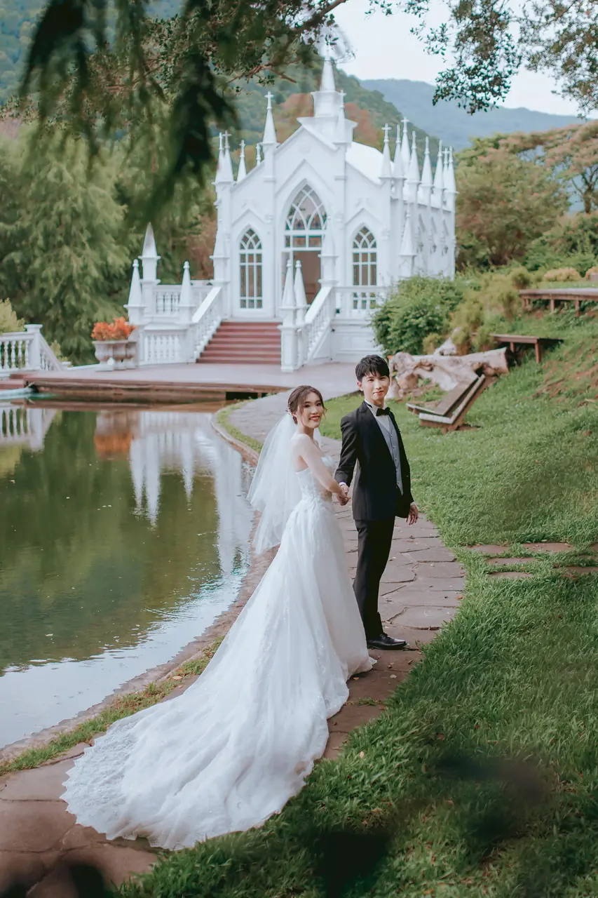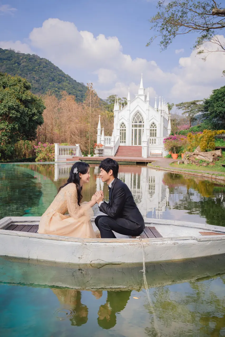 真愛桃花源 婚紗攝影基地如同一幅靜謐而柔美的畫作,為每對新人留下浪漫回憶。這裡的每個角落都在訴說著光影交錯的故事,白色教堂的倒影在水池中舞動,彷彿時間都為之停駐。園內以婚紗拍攝為主題,提供了一個絕佳的場景選擇,特別是那座臨水而建的蜜月小屋,與美麗的錦鯉相伴,讓人感受到與自然的溫柔相依。儘管部分造景因歲月而略顯老舊,但其獨特的歷史感為拍攝增添了別樣的韻味。遊客可以在園中漫步,細細品味每一處景致,享受一杯香醇的咖啡,讓每一刻都充滿詩意。停車便利,門票價格合理,亦可抵消餐點,體貼的服務讓人感覺溫馨。注意防蚊措施,並小心園中青苔濕滑的路徑,讓您的拍攝之旅更加完美。
