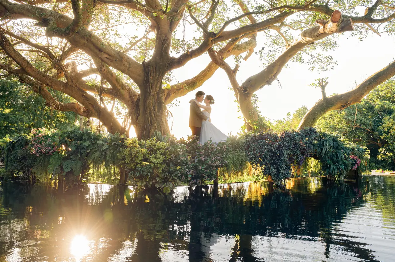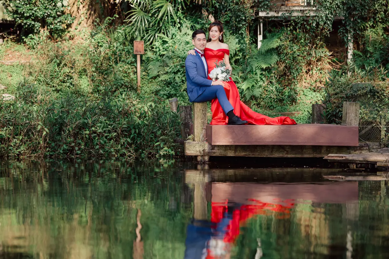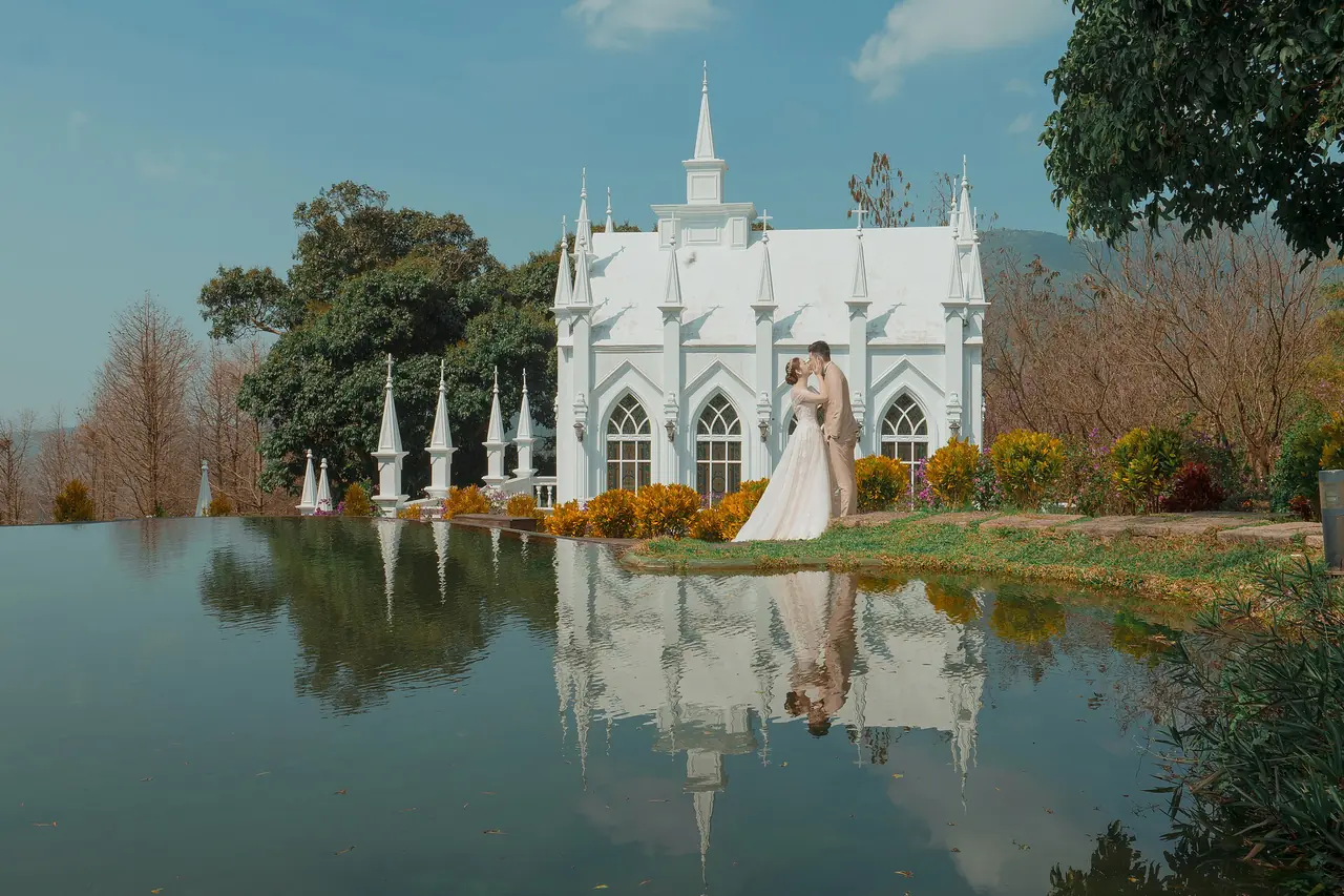 真愛桃花源 婚紗攝影基地如同一幅靜謐而柔美的畫作,為每對新人留下浪漫回憶。這裡的每個角落都在訴說著光影交錯的故事,白色教堂的倒影在水池中舞動,彷彿時間都為之停駐。園內以婚紗拍攝為主題,提供了一個絕佳的場景選擇,特別是那座臨水而建的蜜月小屋,與美麗的錦鯉相伴,讓人感受到與自然的溫柔相依。儘管部分造景因歲月而略顯老舊,但其獨特的歷史感為拍攝增添了別樣的韻味。遊客可以在園中漫步,細細品味每一處景致,享受一杯香醇的咖啡,讓每一刻都充滿詩意。停車便利,門票價格合理,亦可抵消餐點,體貼的服務讓人感覺溫馨。注意防蚊措施,並小心園中青苔濕滑的路徑,讓您的拍攝之旅更加完美。