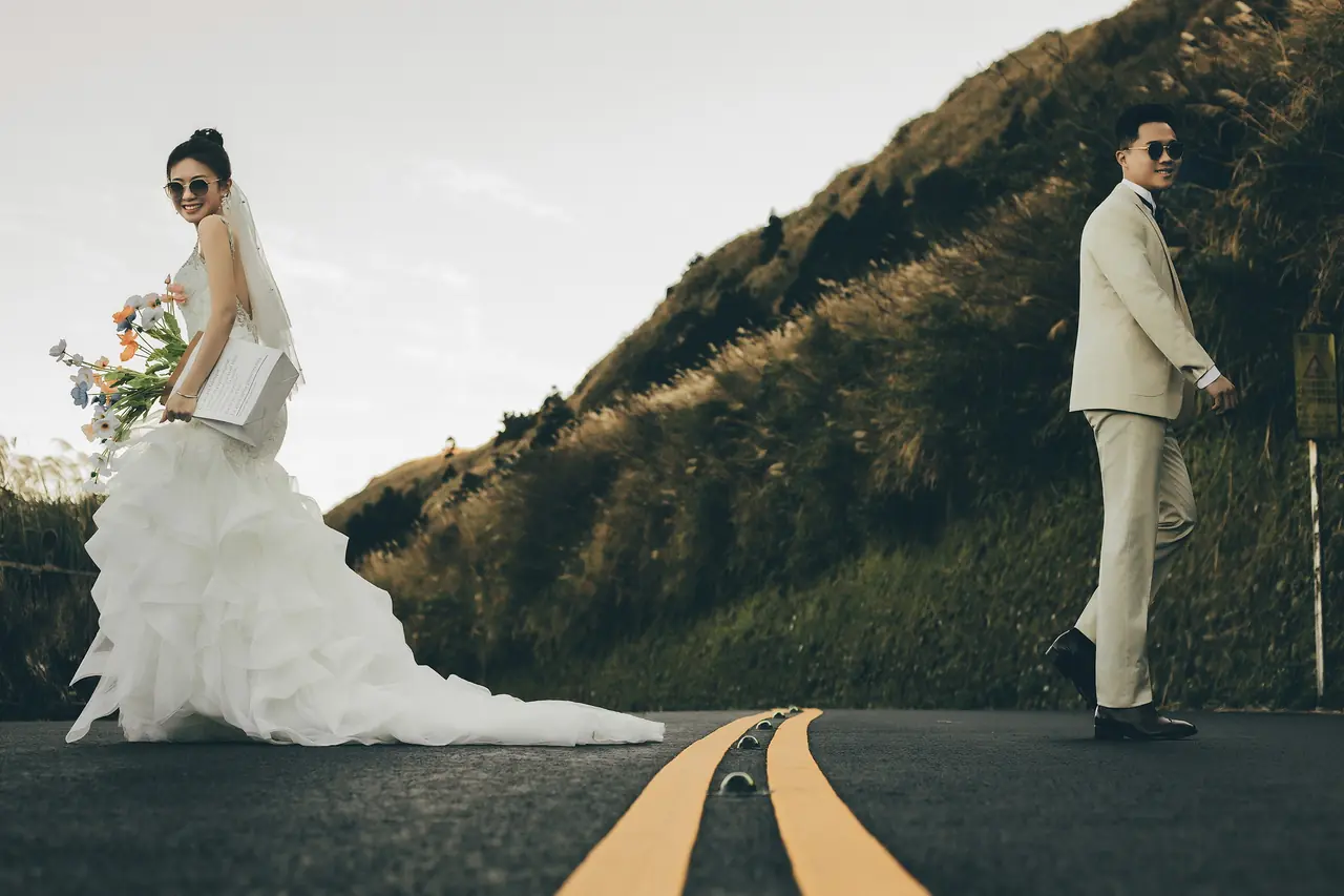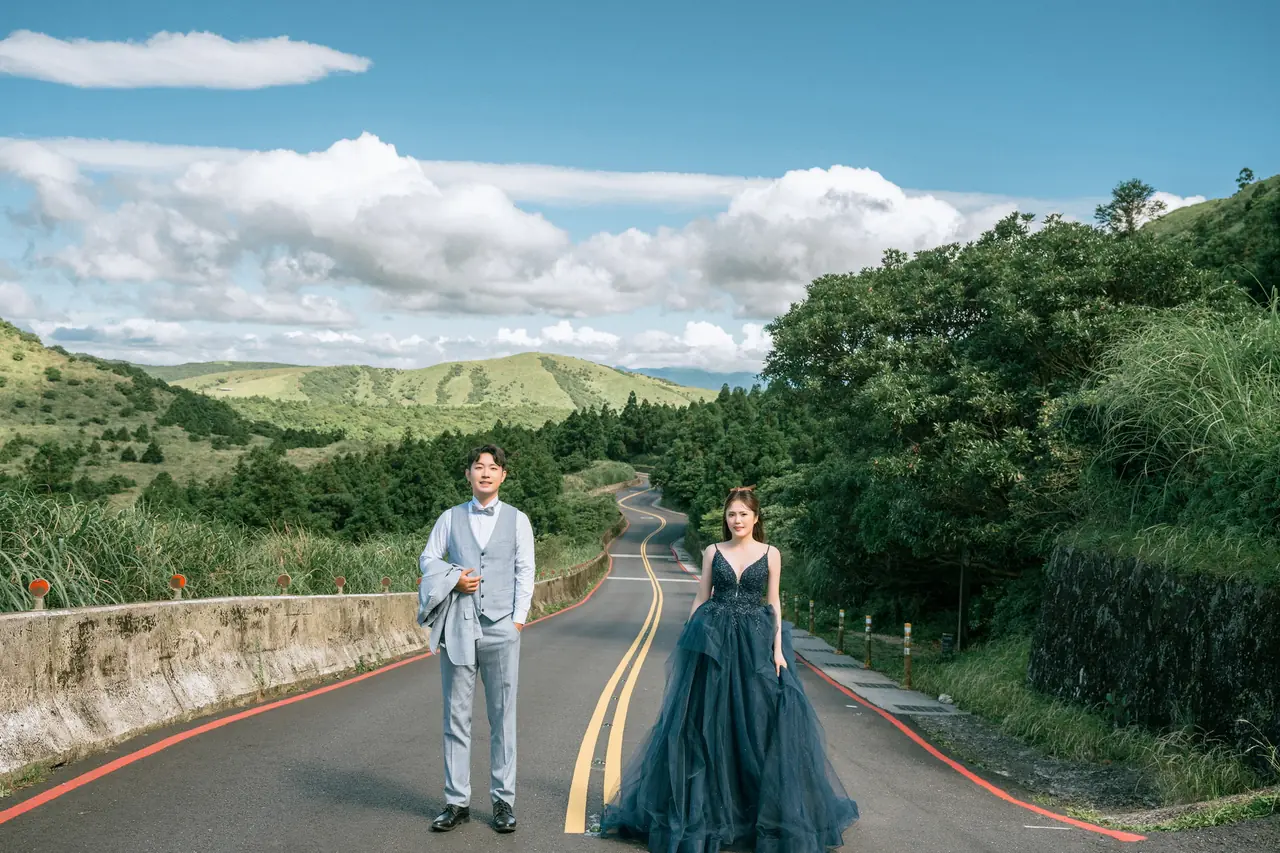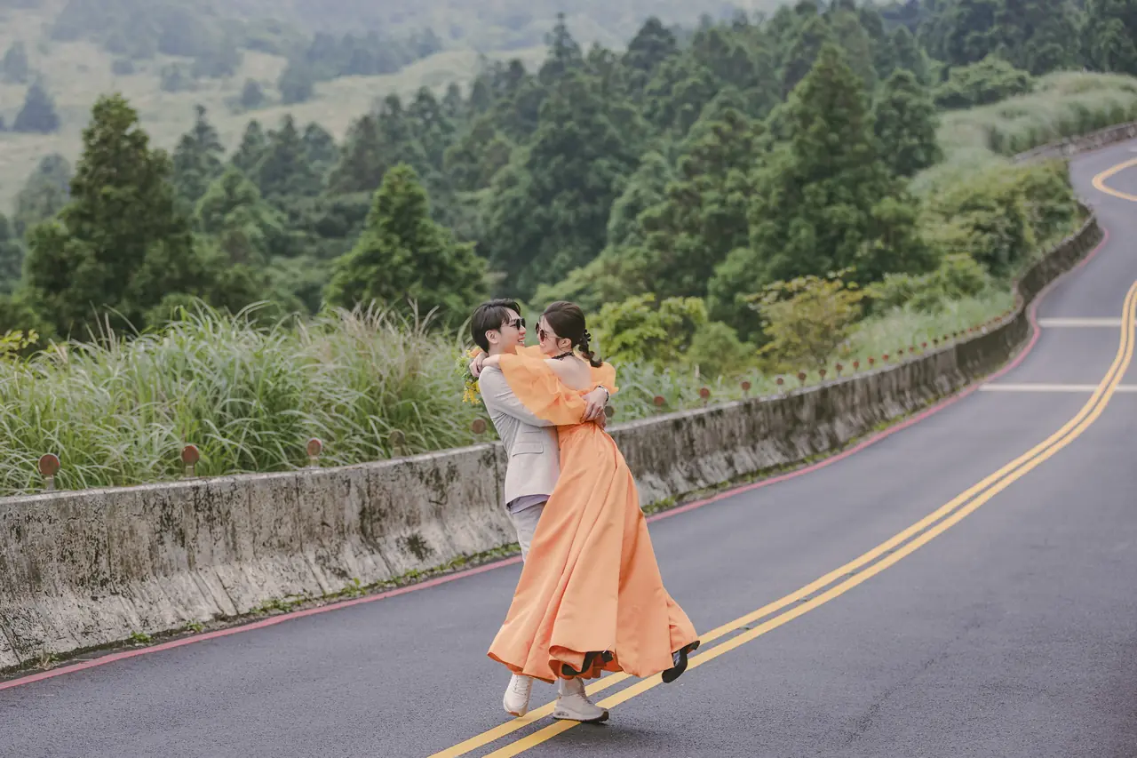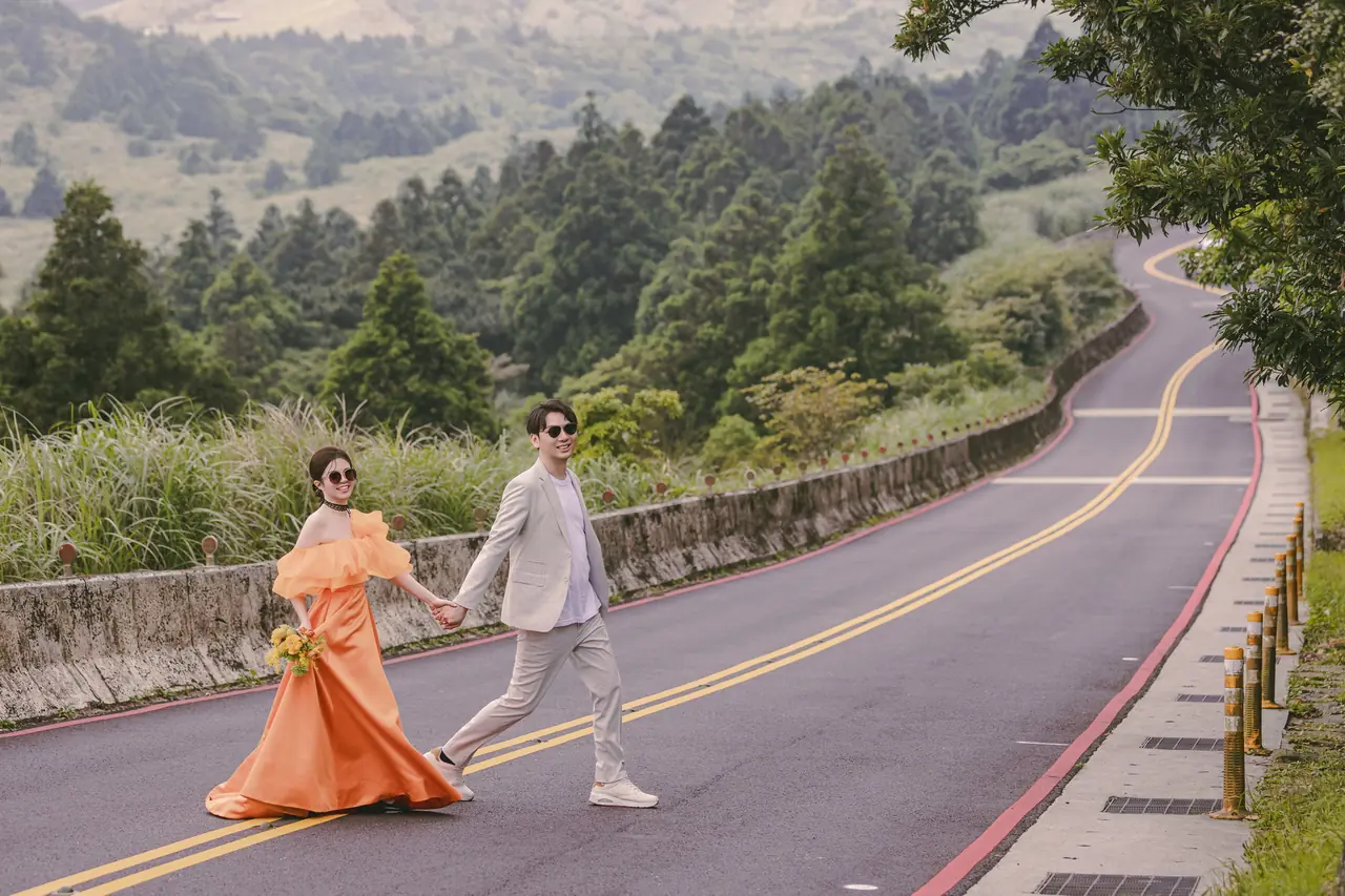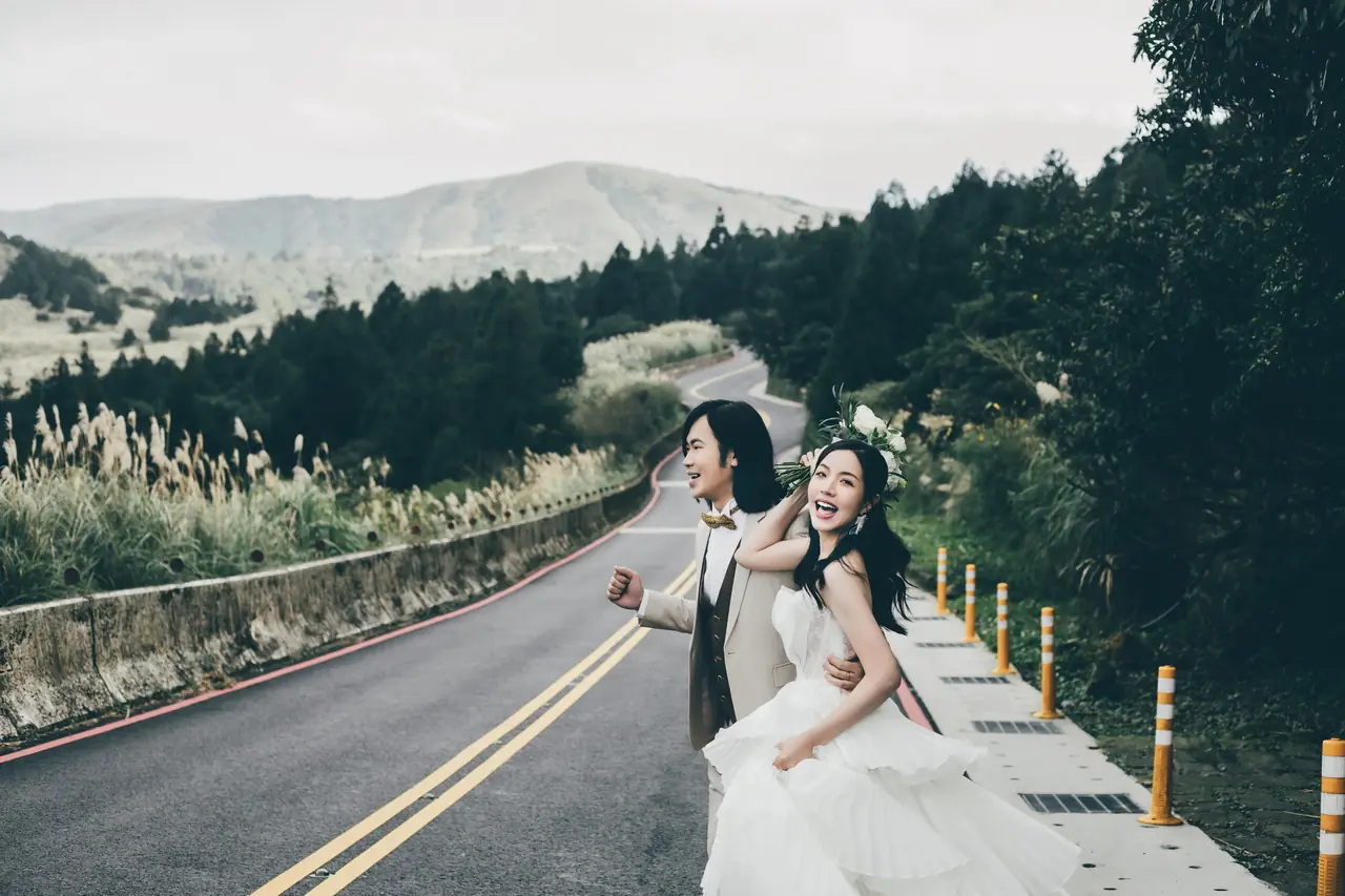「雲上銀芒之路」巴拉卡公路婚紗提案:沿著陽明山稜線鋪展的山路,草坡與風相擁,金色芒花在季節裡輕輕搖曳。彎曲的線條勾勒出公路感的浪漫,遠望北海與層疊山形,光影游走,將人與風景收進同一幅畫。適合極簡自然系旅拍:長焦取S彎與人影比例、傍晚逆光剪影、清晨薄霧的溫柔層次。建議平日清晨或黃昏前往,選擇路旁停靠灣與觀景點取景,不阻礙車流;山區風大氣變快,禦寒與防滑需備。範圍屬國家公園,空拍須申請並避免踐踏草原,讓相依的步伐與山色相伴更久。