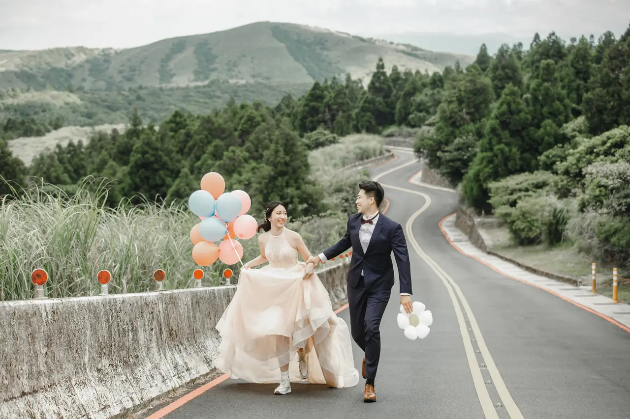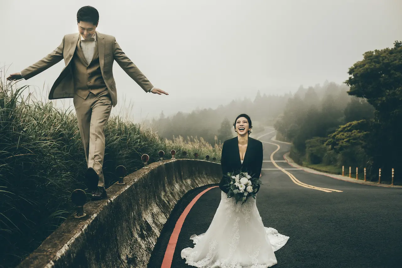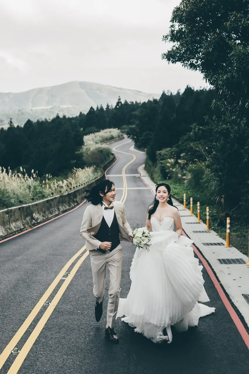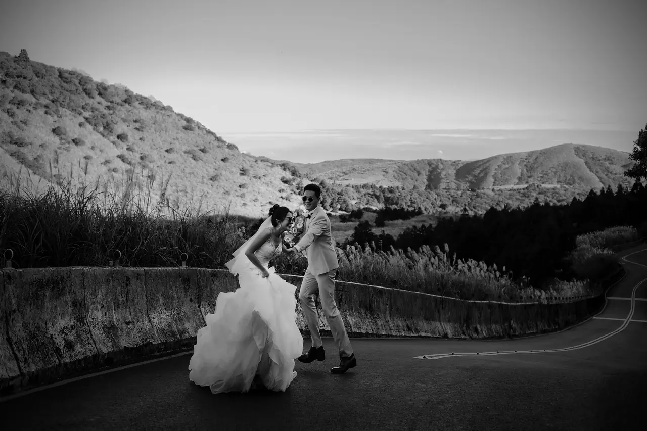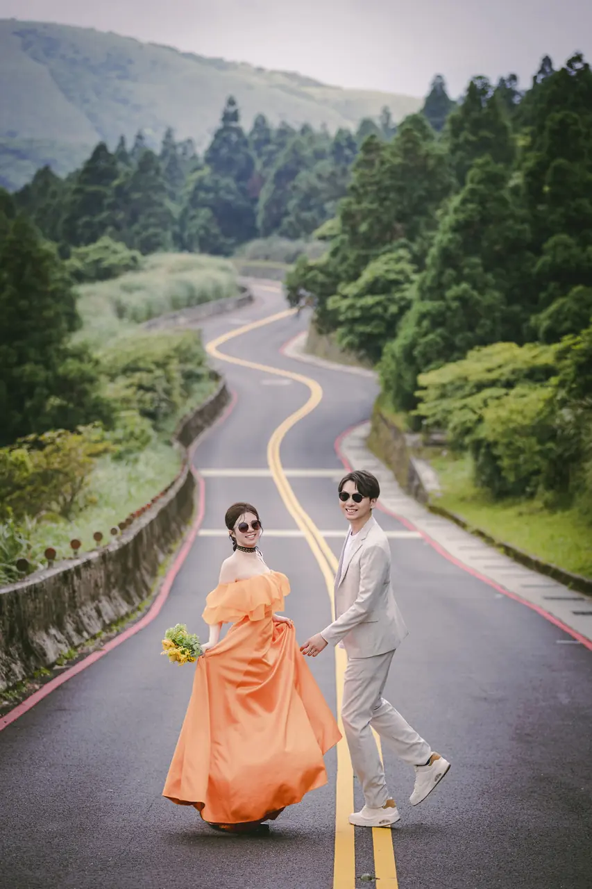 「雲上銀芒之路」巴拉卡公路婚紗提案:沿著陽明山稜線鋪展的山路,草坡與風相擁,金色芒花在季節裡輕輕搖曳。彎曲的線條勾勒出公路感的浪漫,遠望北海與層疊山形,光影游走,將人與風景收進同一幅畫。適合極簡自然系旅拍:長焦取S彎與人影比例、傍晚逆光剪影、清晨薄霧的溫柔層次。建議平日清晨或黃昏前往,選擇路旁停靠灣與觀景點取景,不阻礙車流;山區風大氣變快,禦寒與防滑需備。範圍屬國家公園,空拍須申請並避免踐踏草原,讓相依的步伐與山色相伴更久。