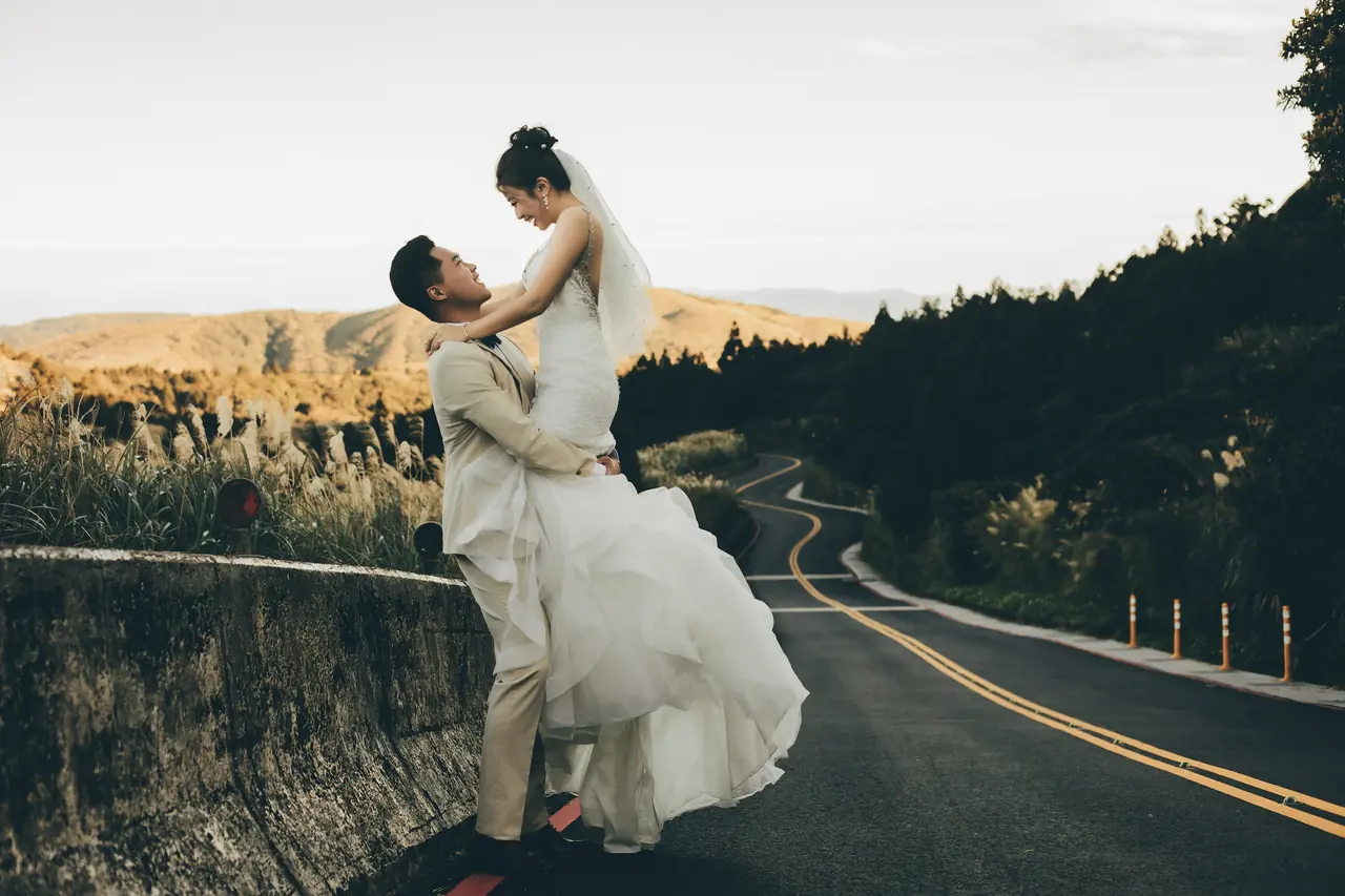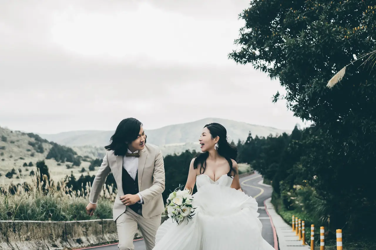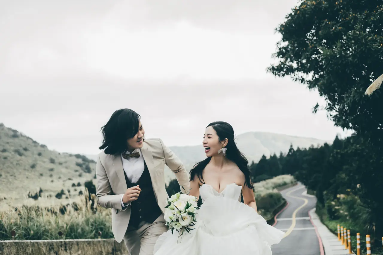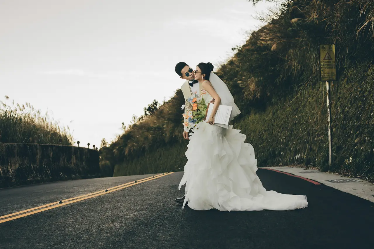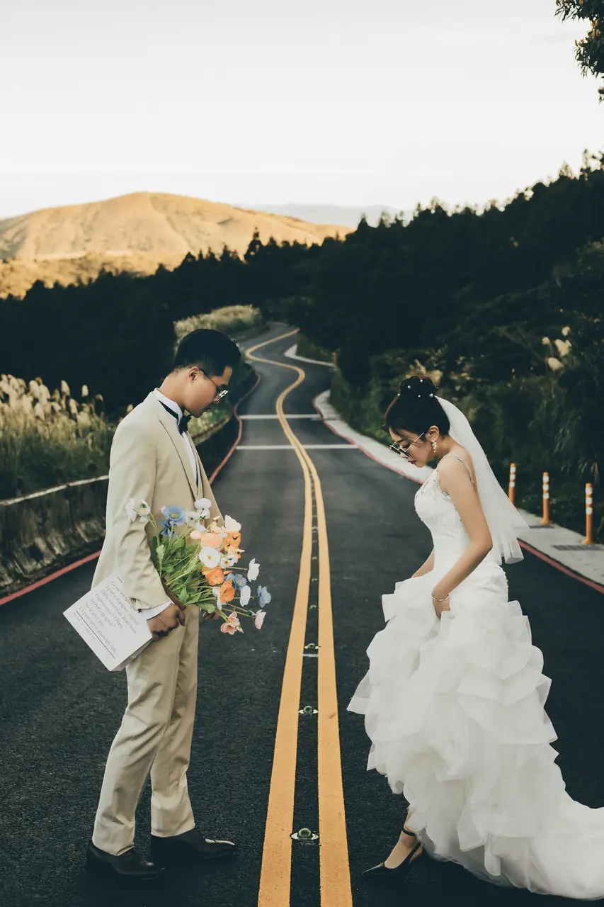 「雲上銀芒之路」巴拉卡公路婚紗提案:沿著陽明山稜線鋪展的山路,草坡與風相擁,金色芒花在季節裡輕輕搖曳。彎曲的線條勾勒出公路感的浪漫,遠望北海與層疊山形,光影游走,將人與風景收進同一幅畫。適合極簡自然系旅拍:長焦取S彎與人影比例、傍晚逆光剪影、清晨薄霧的溫柔層次。建議平日清晨或黃昏前往,選擇路旁停靠灣與觀景點取景,不阻礙車流;山區風大氣變快,禦寒與防滑需備。範圍屬國家公園,空拍須申請並避免踐踏草原,讓相依的步伐與山色相伴更久。