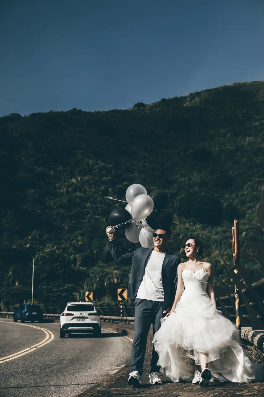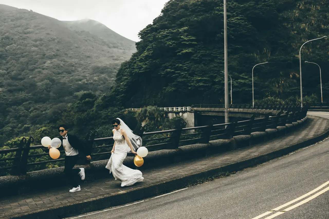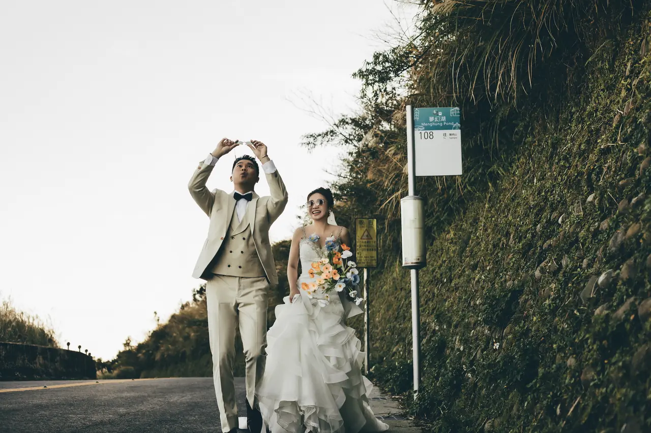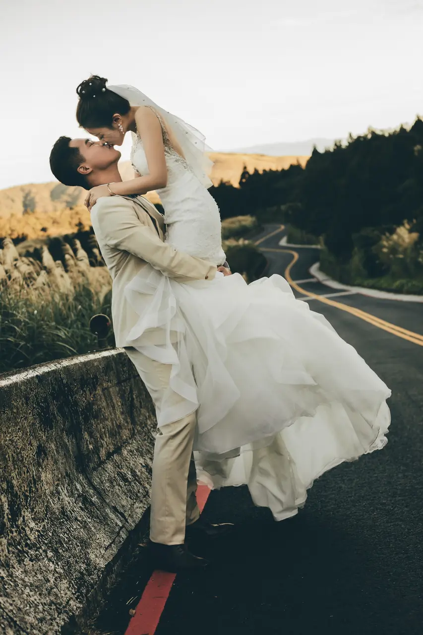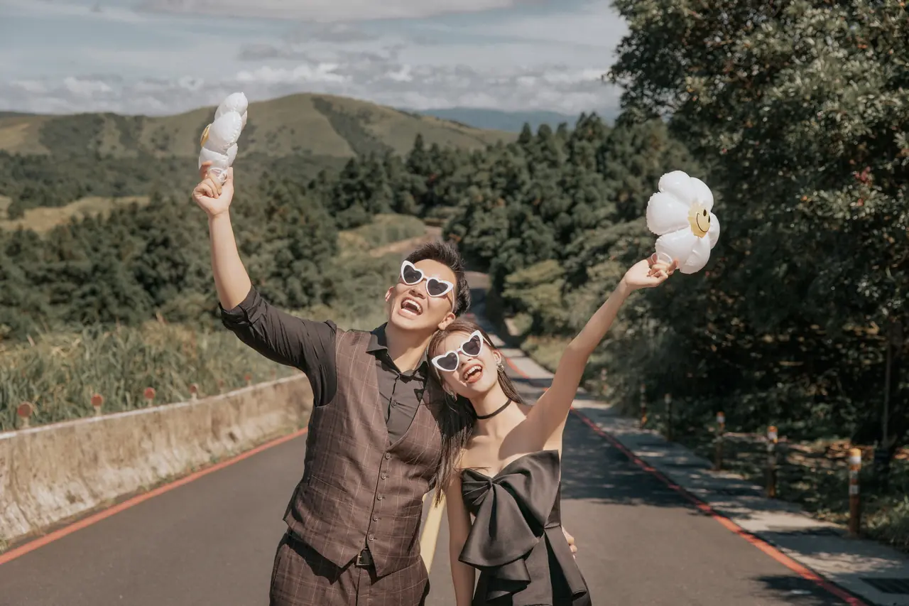 「雲上銀芒之路」巴拉卡公路婚紗提案:沿著陽明山稜線鋪展的山路,草坡與風相擁,金色芒花在季節裡輕輕搖曳。彎曲的線條勾勒出公路感的浪漫,遠望北海與層疊山形,光影游走,將人與風景收進同一幅畫。適合極簡自然系旅拍:長焦取S彎與人影比例、傍晚逆光剪影、清晨薄霧的溫柔層次。建議平日清晨或黃昏前往,選擇路旁停靠灣與觀景點取景,不阻礙車流;山區風大氣變快,禦寒與防滑需備。範圍屬國家公園,空拍須申請並避免踐踏草原,讓相依的步伐與山色相伴更久。