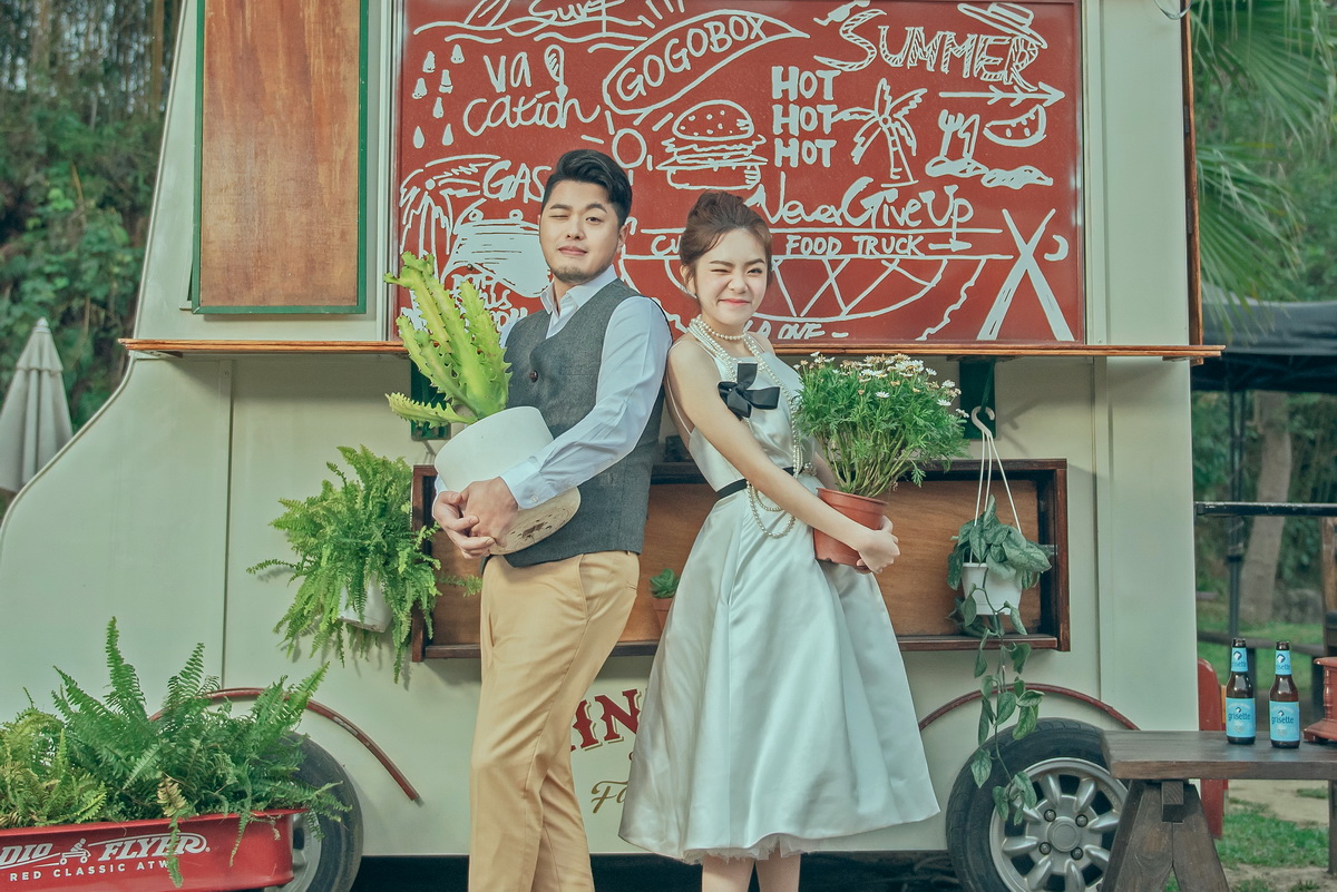 GOGOBOX餐車誌in樂灣基地位於桃園市大溪區,是一個融合了美式風格與露天餐飲的獨特景點,非常適合婚紗拍攝。這裡的餐車廣場充滿了異國情調,提供了絕佳的背景,尤其適合拍攝充滿活力與自然風格的婚紗照。場地內有豐富的餐飲選擇,如招牌起司牛肉堡和炸薯條,是拍攝間隙的完美補給。另外,這裡還是重機愛好者的聚集地,停放的各色機車也為拍攝增添了一份獨特的魅力。需要注意的是,由於環境因素,蚊蟲較多,建議攜帶防蚊液。拍攝時段建議選擇平日,以避開人潮,獲得更佳的拍攝體驗。