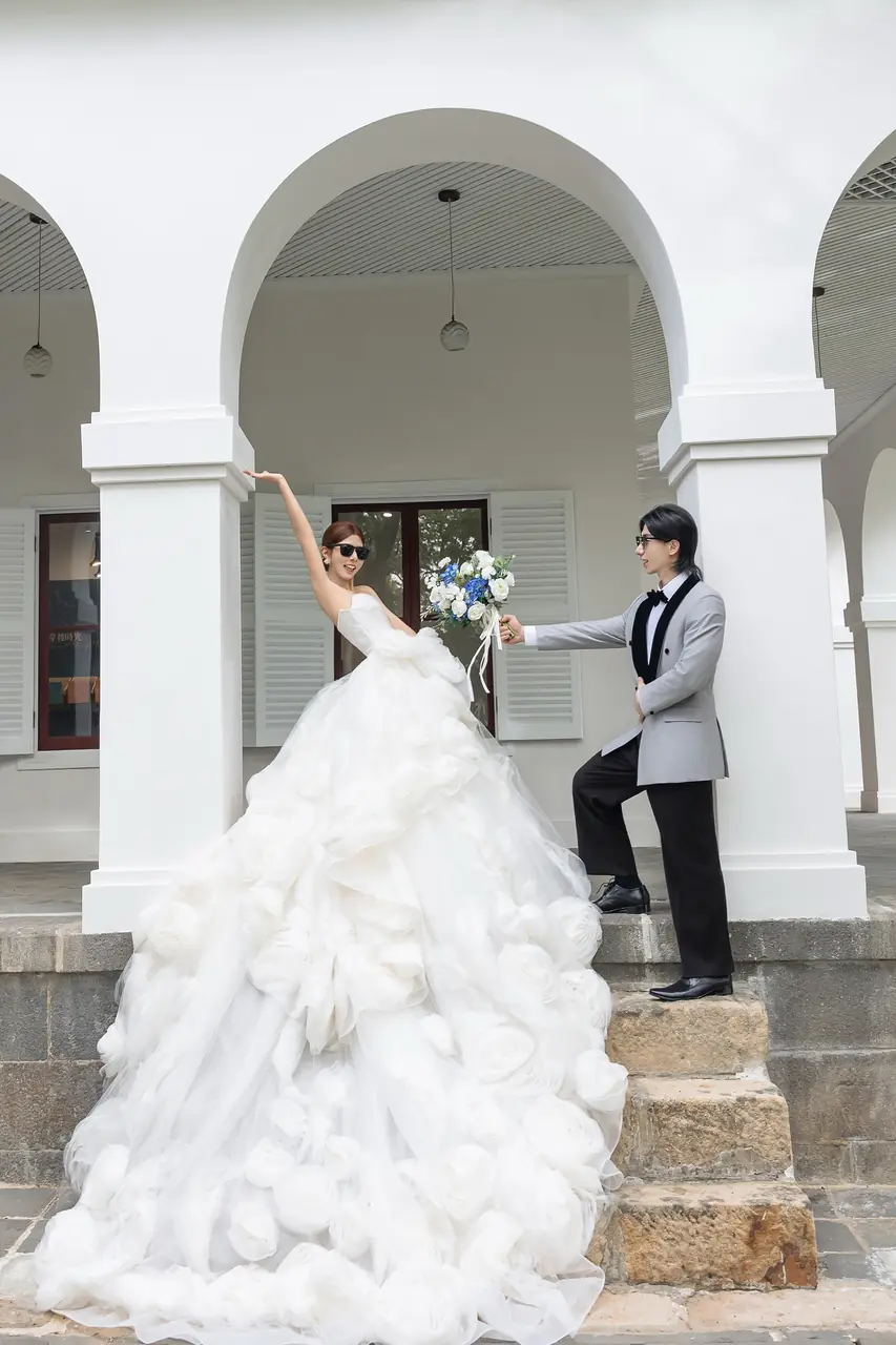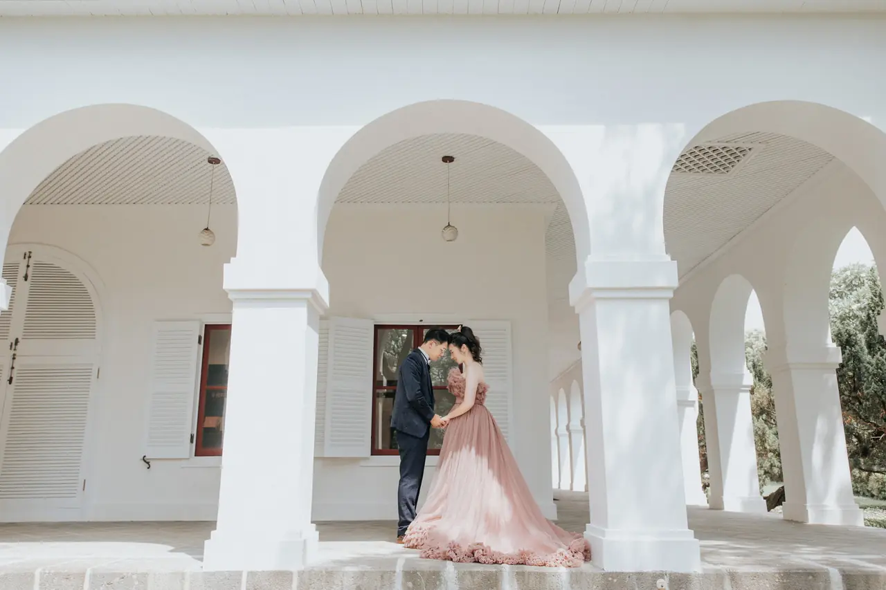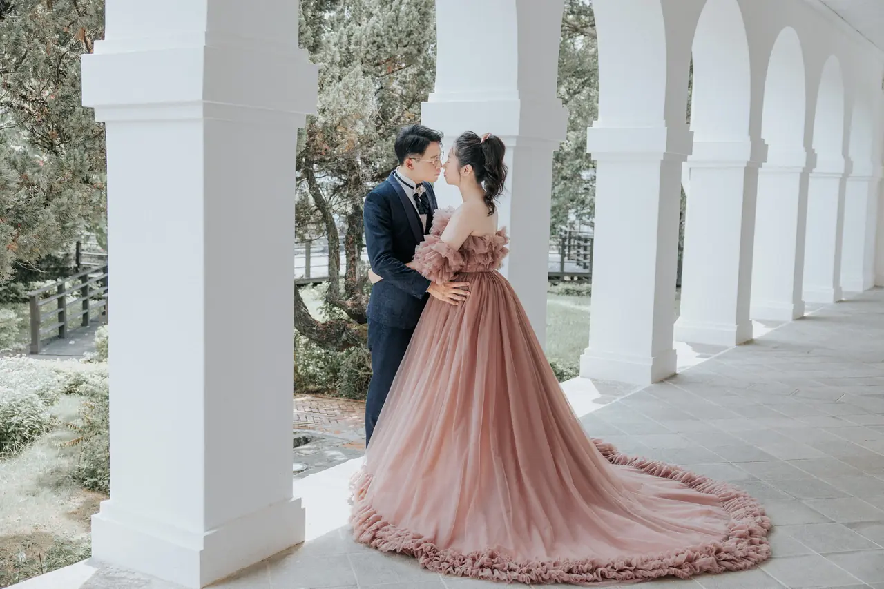 在前清淡水關稅務司官邸(小白宮),每一個角落都充滿浪漫氣息。這座古典建築以其純白的牆面和優雅的結構,成為新人拍攝婚紗的理想場地。漫步於靜謐的小徑,腳下是歲月的印記,四周環繞著淡雅的雞蛋花香,讓人彷彿置身於一幅靜態的風景畫中。透過建築的窗櫺,淡水河的柔美光影與遠處的觀音山交織出一幅天然的畫布,為婚紗照增添無限詩意。無論是清晨的第一縷陽光還是黃昏的柔和霞光,在這裡都能捕捉到最動人的瞬間。這個小而美的地方,環境舒適,風景宜人,讓每一位到訪的旅人都能感受到溫柔時光的流轉。