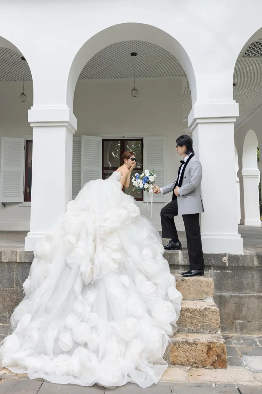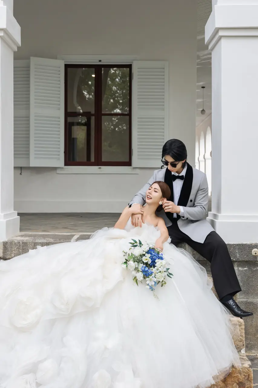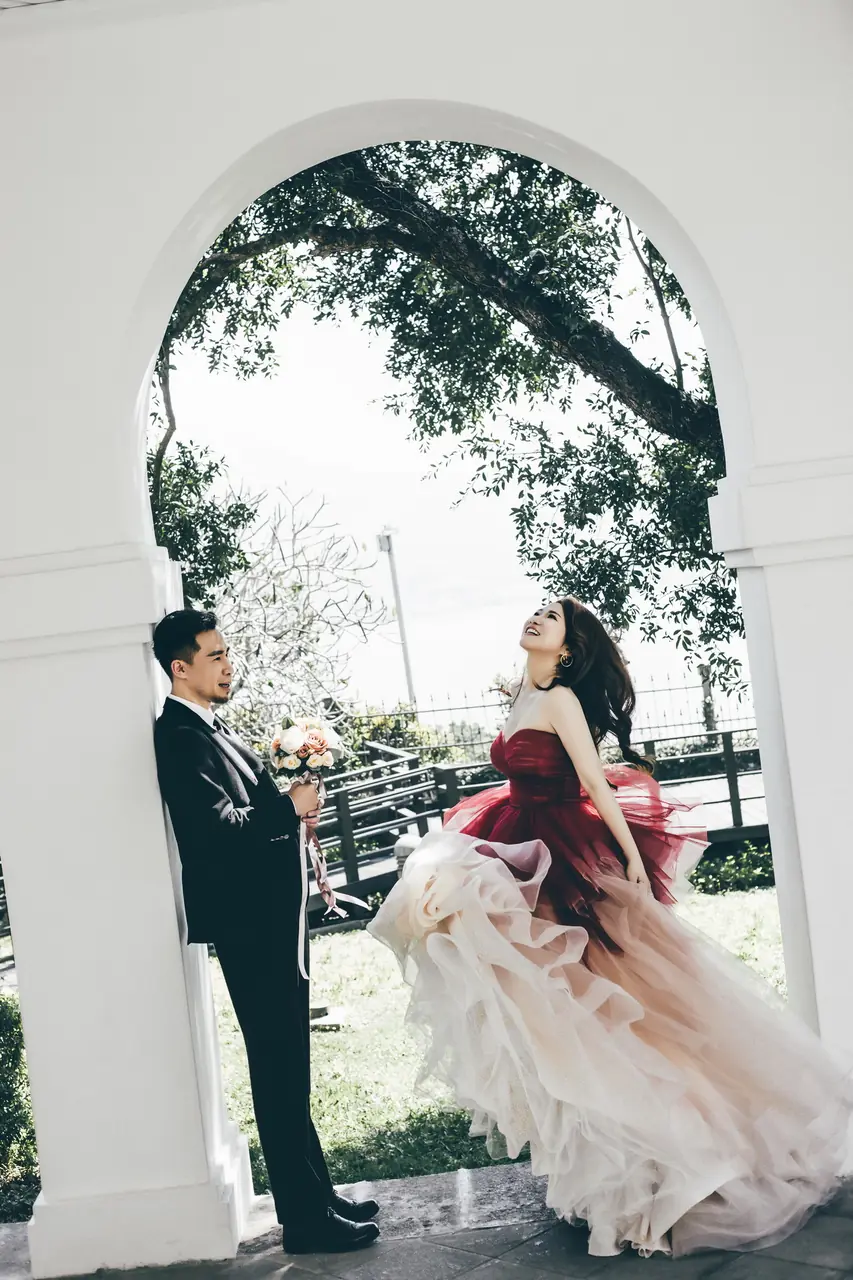 在前清淡水關稅務司官邸(小白宮),每一個角落都充滿浪漫氣息。這座古典建築以其純白的牆面和優雅的結構,成為新人拍攝婚紗的理想場地。漫步於靜謐的小徑,腳下是歲月的印記,四周環繞著淡雅的雞蛋花香,讓人彷彿置身於一幅靜態的風景畫中。透過建築的窗櫺,淡水河的柔美光影與遠處的觀音山交織出一幅天然的畫布,為婚紗照增添無限詩意。無論是清晨的第一縷陽光還是黃昏的柔和霞光,在這裡都能捕捉到最動人的瞬間。這個小而美的地方,環境舒適,風景宜人,讓每一位到訪的旅人都能感受到溫柔時光的流轉。