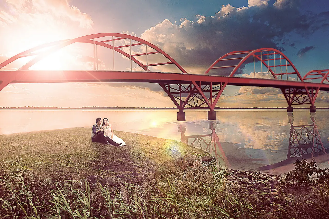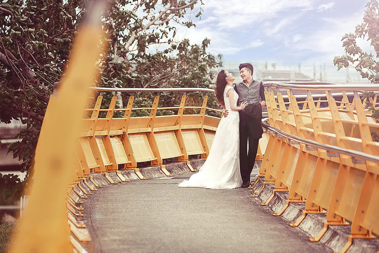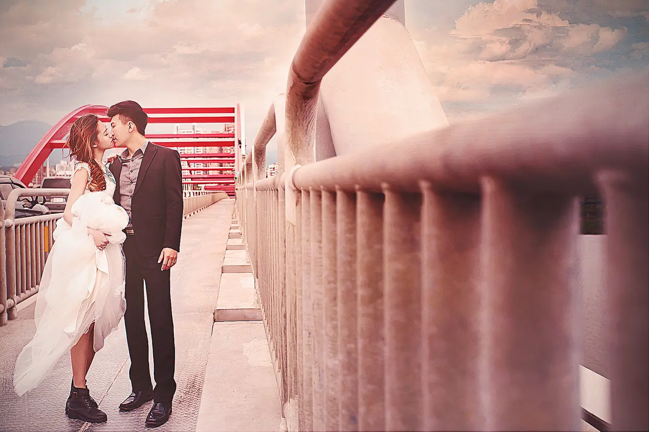 淡水河畔的關渡大橋,宛如一條紅色絲帶,優雅地橫跨在北投與八里的天際之間。這座鮮紅的拱橋,不僅僅是交通的樞紐,更是攝影師鏡頭下的詩篇。當夕陽西下,橋身沐浴在金紅的光影中,整個世界彷彿靜謐而柔和。漫步在橋兩側的步道上,腳步輕盈,迎面而來的是淡水河的微風和觀音山的倩影。這裡的每一個角度,都適合駐足凝望,捕捉那瞬間的永恆。儘管橋上車流不息,行人卻可以在專屬的步道上,隨心所欲地放慢腳步,讓思緒隨著河流遠去。這座已有40年歷史的橋樑,雖然年歲漸長,但在政府的悉心維護下,依舊煥發著青春的活力,是婚紗攝影的理想場景,讓每一對戀人在此刻留下最美的回憶。