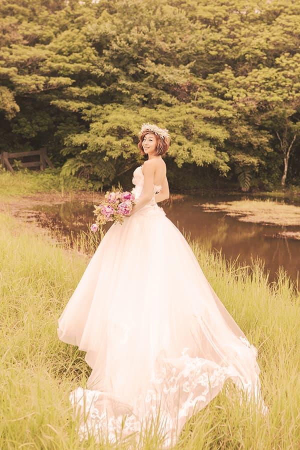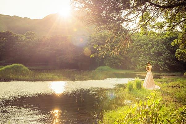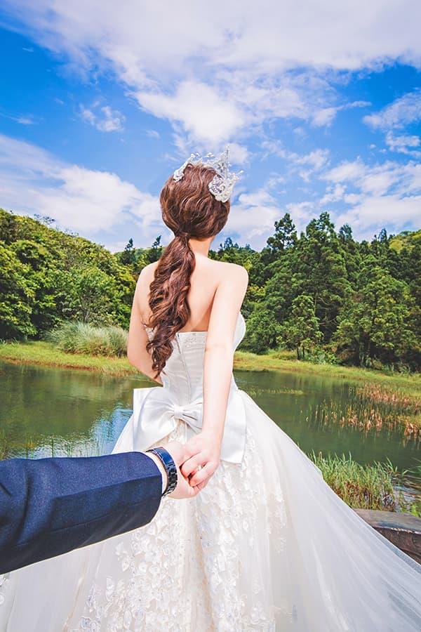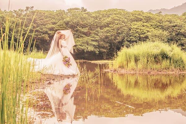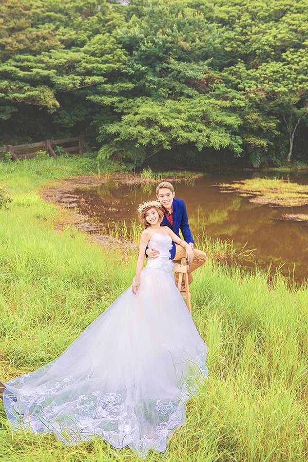 位於陽明山的冷水坑生態池,宛如隱藏在山林中的一顆明珠,成為新人拍攝婚紗的夢幻之地。步入這片天地,四周被溫暖的山風輕撫,映入眼帘的是一汪清澈的池水,倒映著藍天白雲,如同一幅動人的畫作。生態池周圍圍繞著柔和的綠意,萍蓬草在春日盛開,為整個空間增添一抹亮麗的色彩。漫步於湖畔的步道,耳邊伴隨著潺潺流水聲與蛙鳴,彷彿置身於一場自然的交響樂中。這裡的每一處角落,從池邊的光影變幻到步道上的綠意盎然,都能成為婚紗照中最動人的背景。無論是清晨的薄霧或黃昏的餘暉,冷水坑生態池都能為新人捕捉到最完美的浪漫時刻。這片天地不僅適合情侶,也是一個讓全家大小都能悠閒享受的自然樂園。