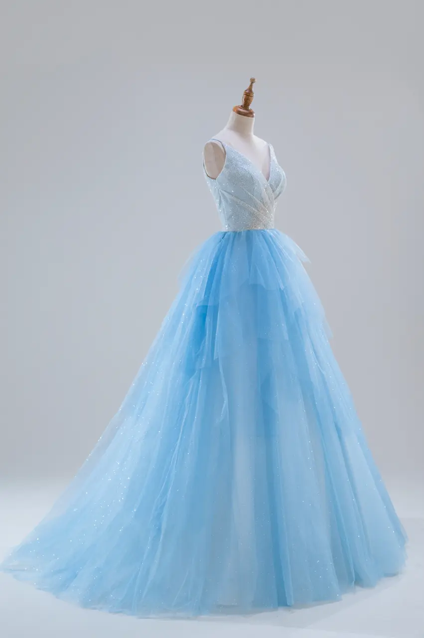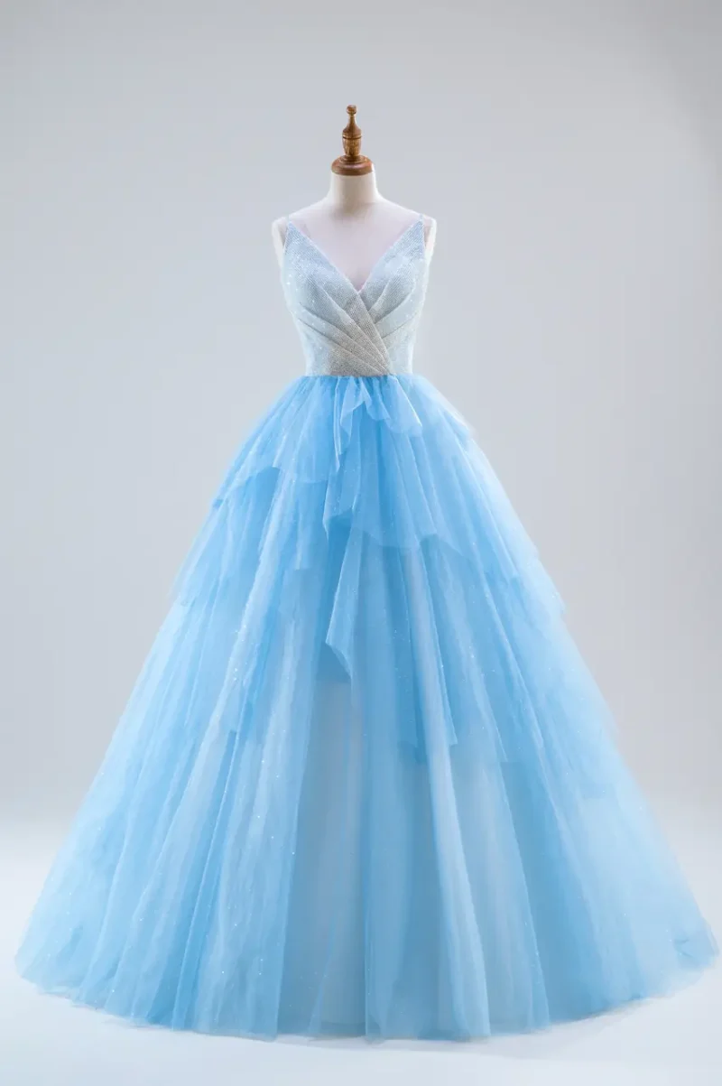 她走進了那場未曾醒來的冬,一襲藍霧如積雪初融,在月色下輕盈曳動。細肩帶交織如霜,覆上心湖;紗質層層堆疊成靜謐藍境,彷彿走在結冰的小徑上,細語只能被靜默聆聽。這非屬春日的色澤,而是一種深藏於夜晚雪脈中的情緒紀錄—純粹、透明、帶有一絲遲疑的柔軟。這不只是穿上的一件衣裳,而是一段關於等待與靠近之間的緩慢旅程。