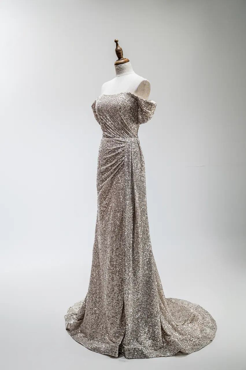 在繁星閃爍的夜晚,她如同一道劃過天際的星瀑,亮眼奪目。金色的異材質柔順流曳,將她托舉至夢的彼岸。卡肩設計如夜風輕撫,開叉裙擺輕舞,訴說著屬於她的靜謐與壯闊。在每一場盛宴中,她都能夠成為所有目光的中心,承載著自己的故事與希望,優雅而自信地步入未來。