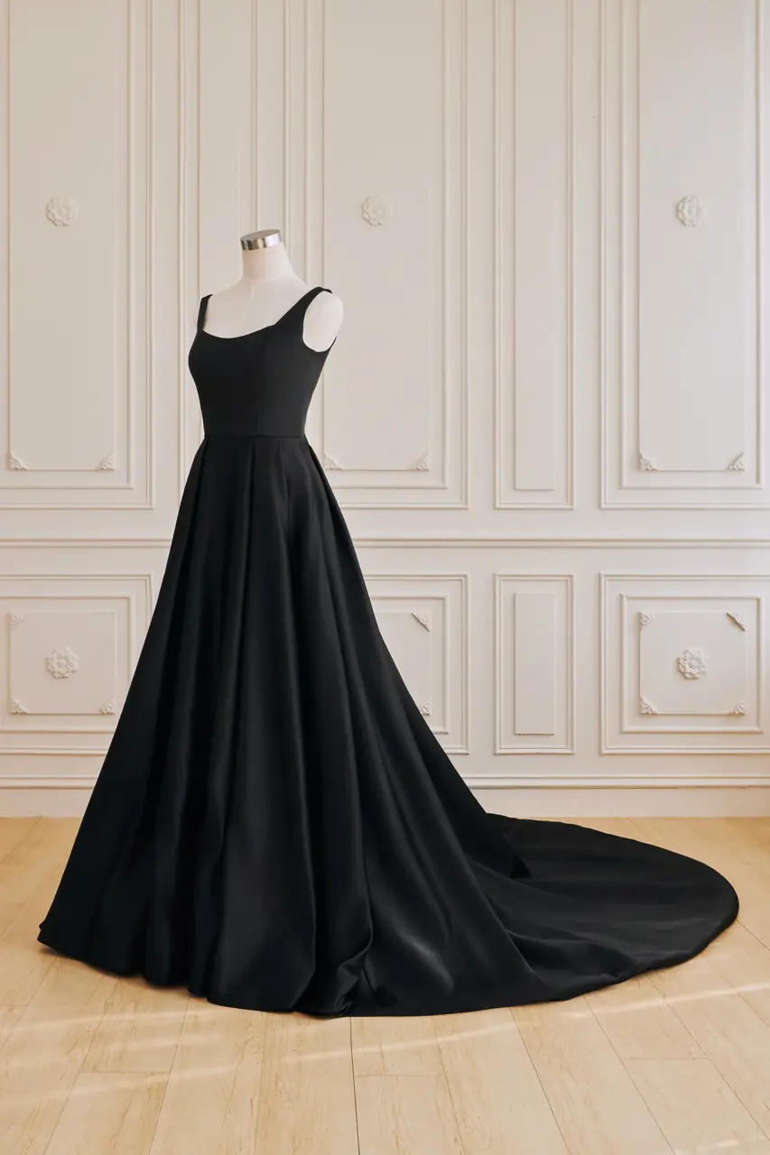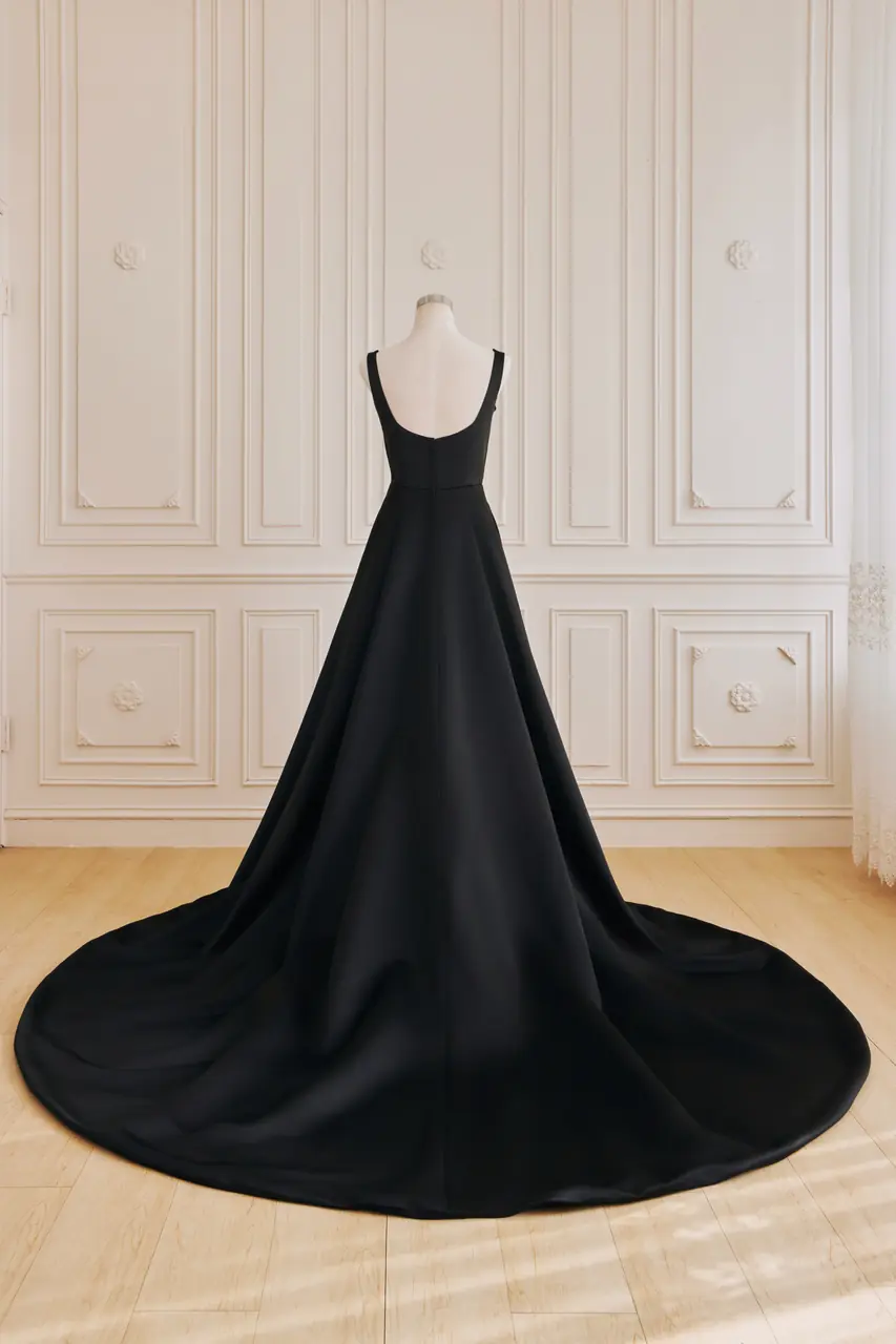 《靜默遺句晚宴禮服》是一襲關於沉靜愛意的篇章。低調的方領與背心式剪裁,勾勒出極簡純粹的線條語彙;緞面黑色裙襬靜靜垂落,在光影交錯的空間裡彷彿夜幕的深呼吸。這並非一場喧嘩的告白,而像是一段在漫長凝視中才得以被聽見的深情。它為那些將情感藏於眉目之間的靈魂而存在,穿越華麗的定義,留下時間不敢觸碰的靜美。