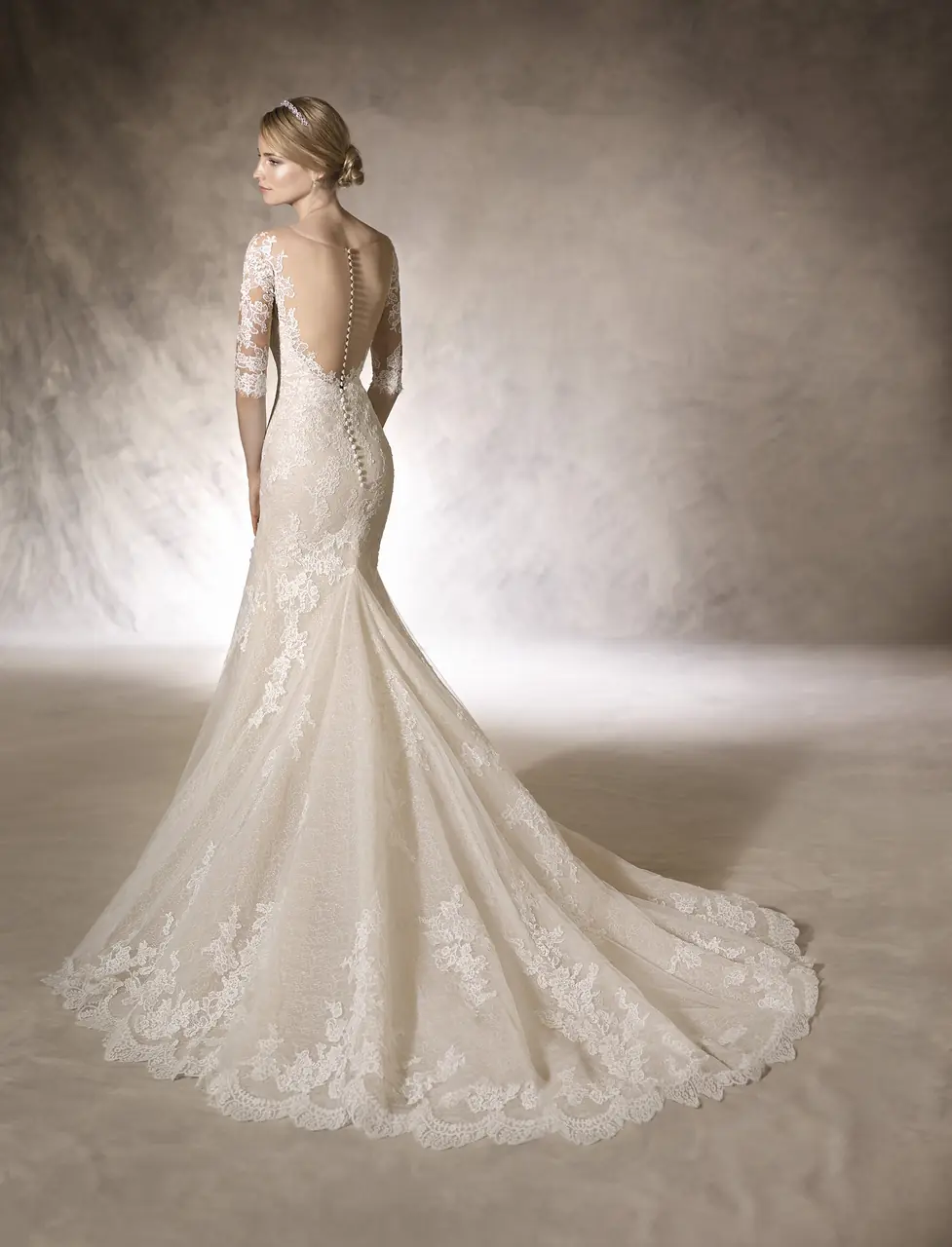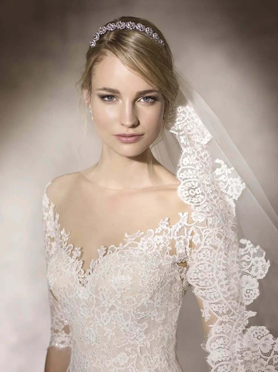在月色的輕霧中,這件婚紗宛如流沙般輕盈閃爍。香檳色的底色,如同一場夜晚的夢境,細緻的蕾絲覆蓋其上,展現出細膩的工藝與無與倫比的優雅。長袖設計為這份柔美增添了一絲神秘,恰如其分地映襯出新娘的高貴氣質。容納著每一個細節的情感觸動,這件婚紗將成為你生命中最珍貴的一部分,陪伴著你跨越夢想與現實的界線。