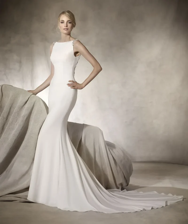 晨曦綢語婚紗宛如黎明時分輕拂而過的微風,以細膩的緞面襯托出新娘的高貴典雅。白色的純淨在陽光下映照出柔和的光影,背心設計則猶如輕盈的雲朵,盈滿夢幻的氣息。這件婚紗不僅是儀式上的一部分,更是一首描寫愛與承諾的詩篇,讓每個細節如翩翩起舞的旋律,優雅地訴說著永恆的篇章。
