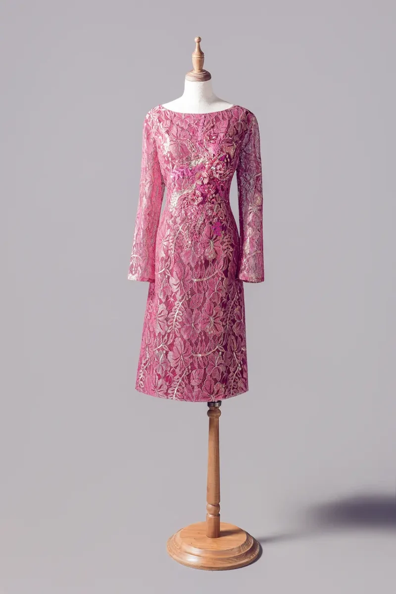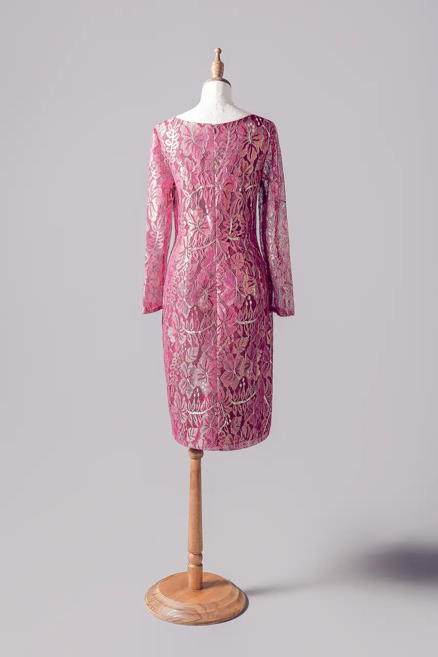 《晚梅絮語媽媽禮服》是一幅關於時光與溫柔的詩。紫芋色的亮片蕾絲如寒冬裡綻放的一枝紅梅,溫婉沉靜,卻又不聲不響地照亮整個畫面。長袖包裹著溫暖的臂彎,象徵曾擁抱歲月的堅定力量。細膩繁複的花葉刺繡,彷彿每一次輕聲呢喃,都來自那個在孩子身後默默守望的身影。在這重要的時刻,她不是配角,是靈魂的承載者,是家族記憶中最柔軟的一頁。