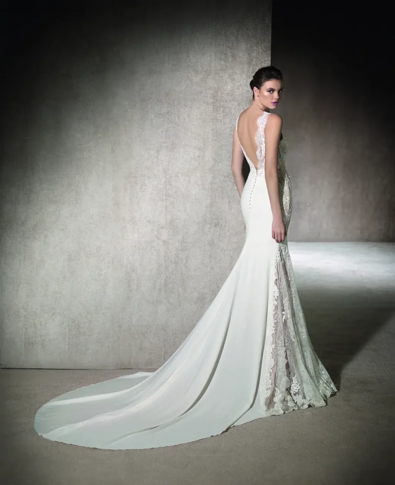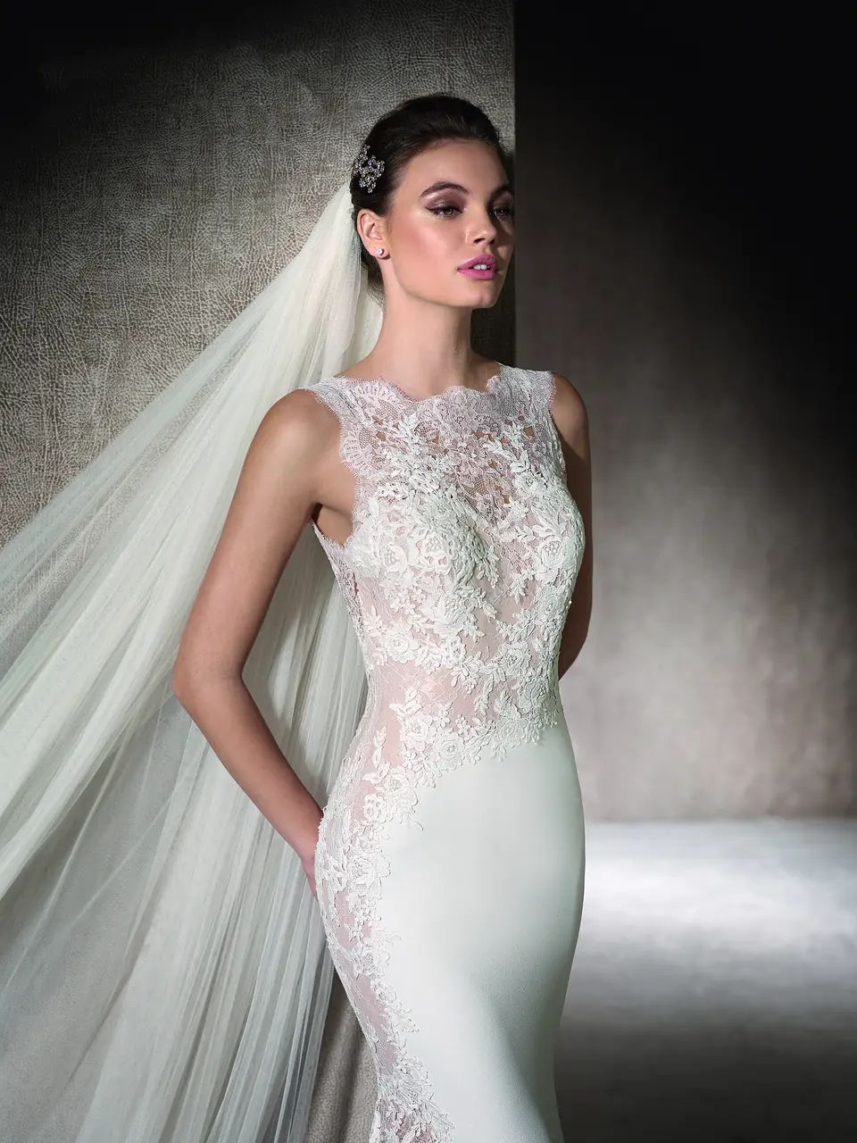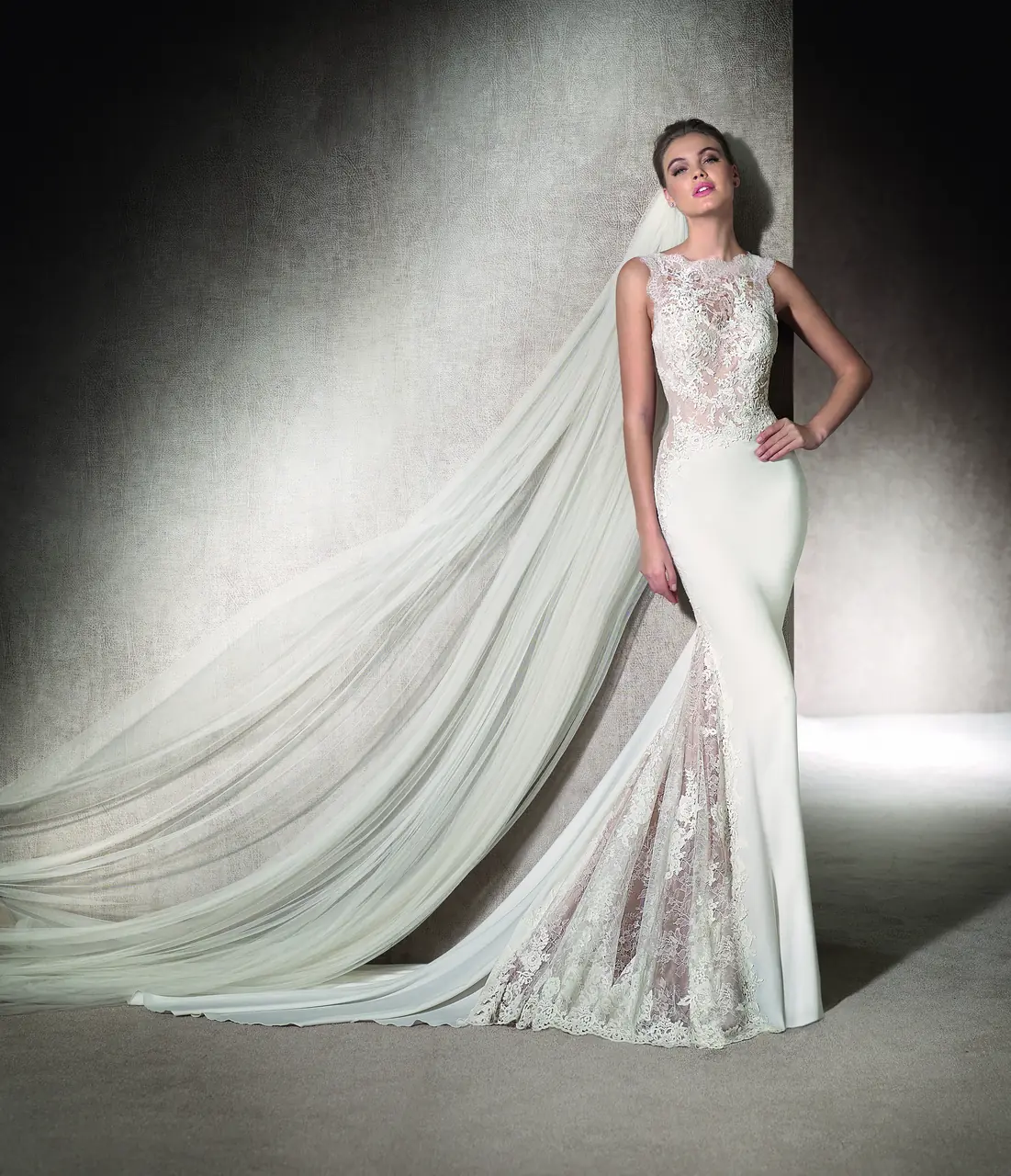 在那薄霧籠罩的初晨,她輕盈地踏入婚禮的夢境。這件婚紗如同一首輕柔的樂章,魚尾的裙襬滑過地面,宛如吟唱著一段古老的故事。蕾絲的細語,輕輕覆蓋於她的肩頭,如同陽光拂過大地,滿載著無盡的希望與愛意。矚目她的時刻,世間的一切都暫停,只有心跳與誓言相伴。